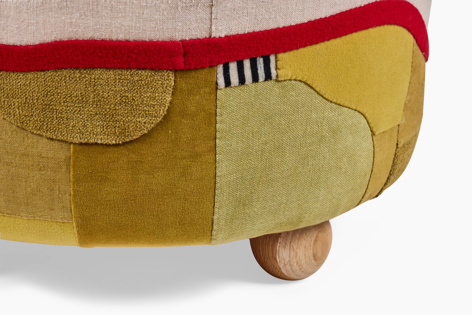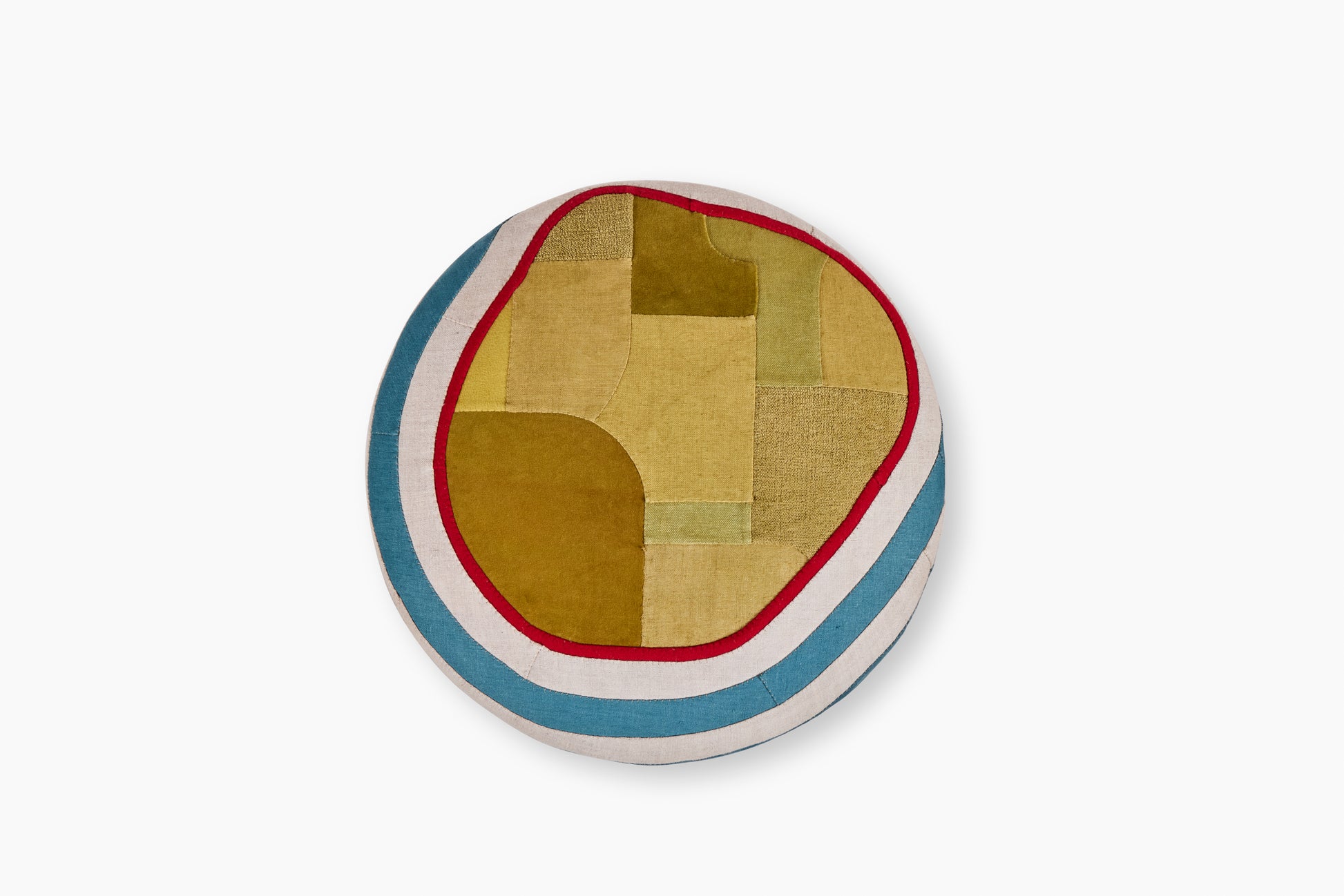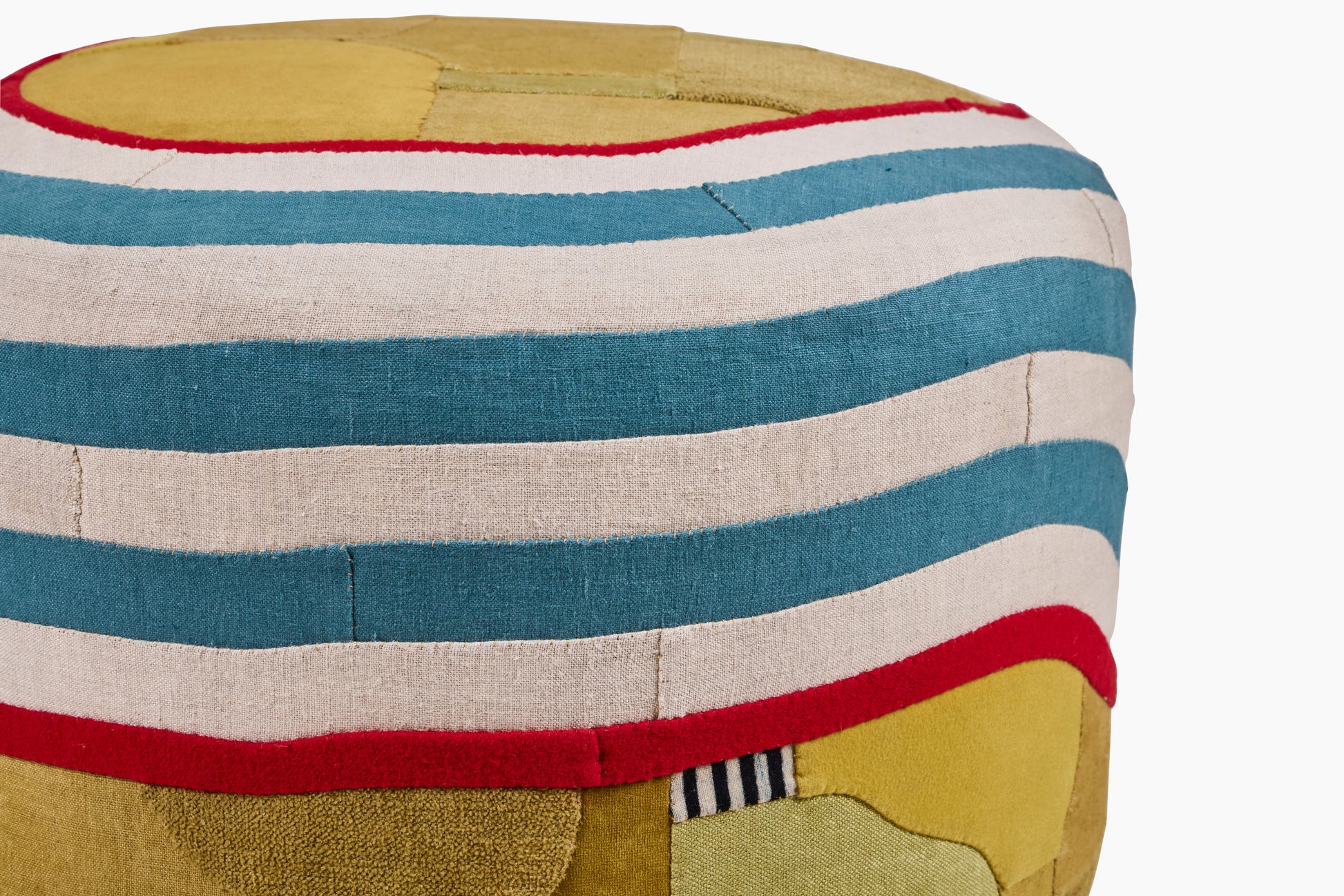 Adam Pogue is a textile artist based in Los Angeles. He began his career working in apparel and has since created his own textile appliqué language, inspired by Korean Pojagi and quilting techniques found throughout the world. Adam works with Commune on products and special projects using textile remnants and vintage fabrics that Commune finds along the way. Obi fabrics from a trip to Japan, army canvas used for upholstery, and discarded carpet and drapery are all reconfigured to create a new textile experience.