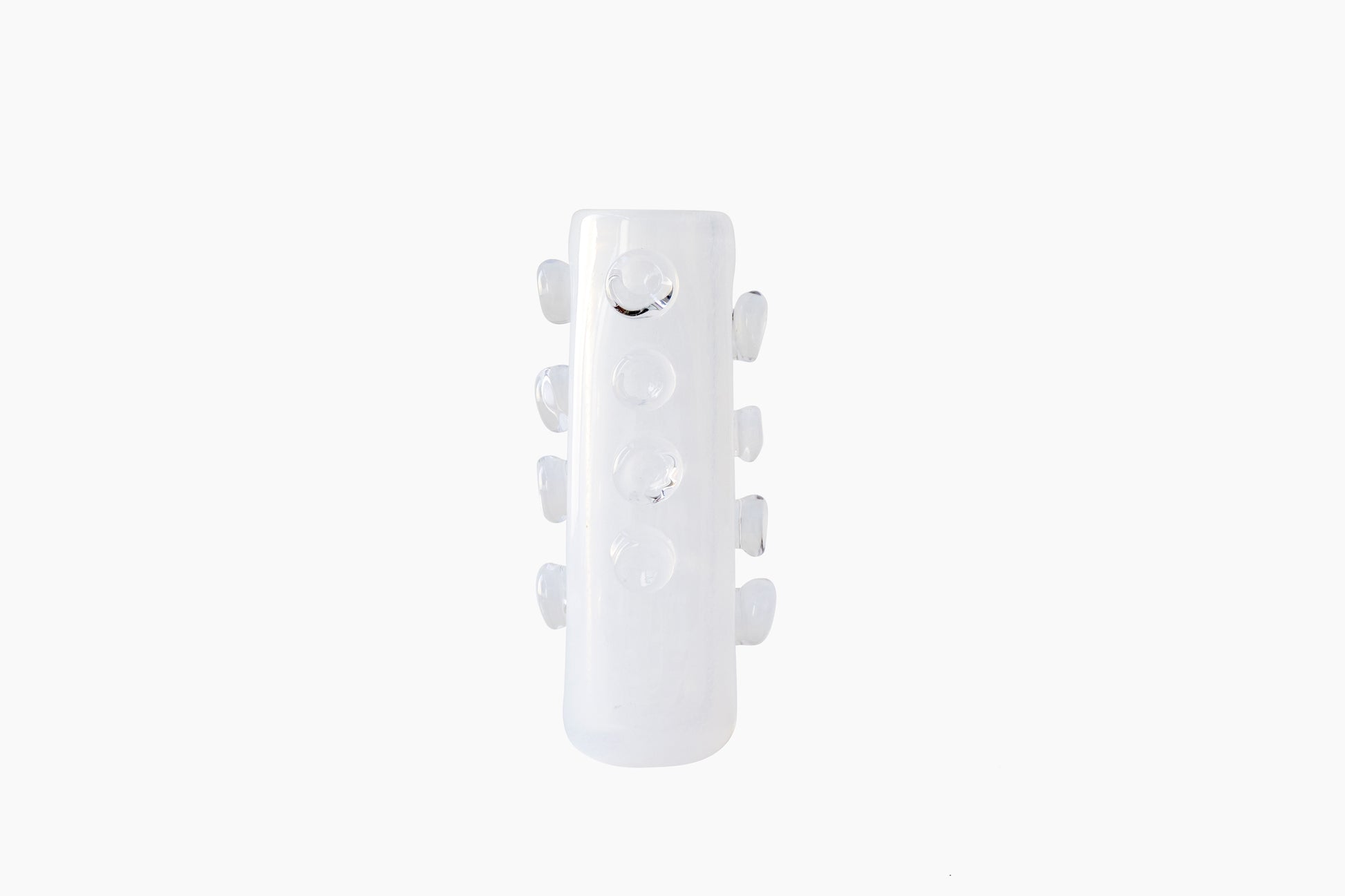 Alex Zanzinger designs these glass vases with inspiration from her ceramic forms. Her process is rooted in exploration of shapes through progression of material movement. She draws inspiration from the earth, sea and human bodies, creating still representations of expressions of all of these elements. Each piece is handcrafted, organic in shape and one of a kind.