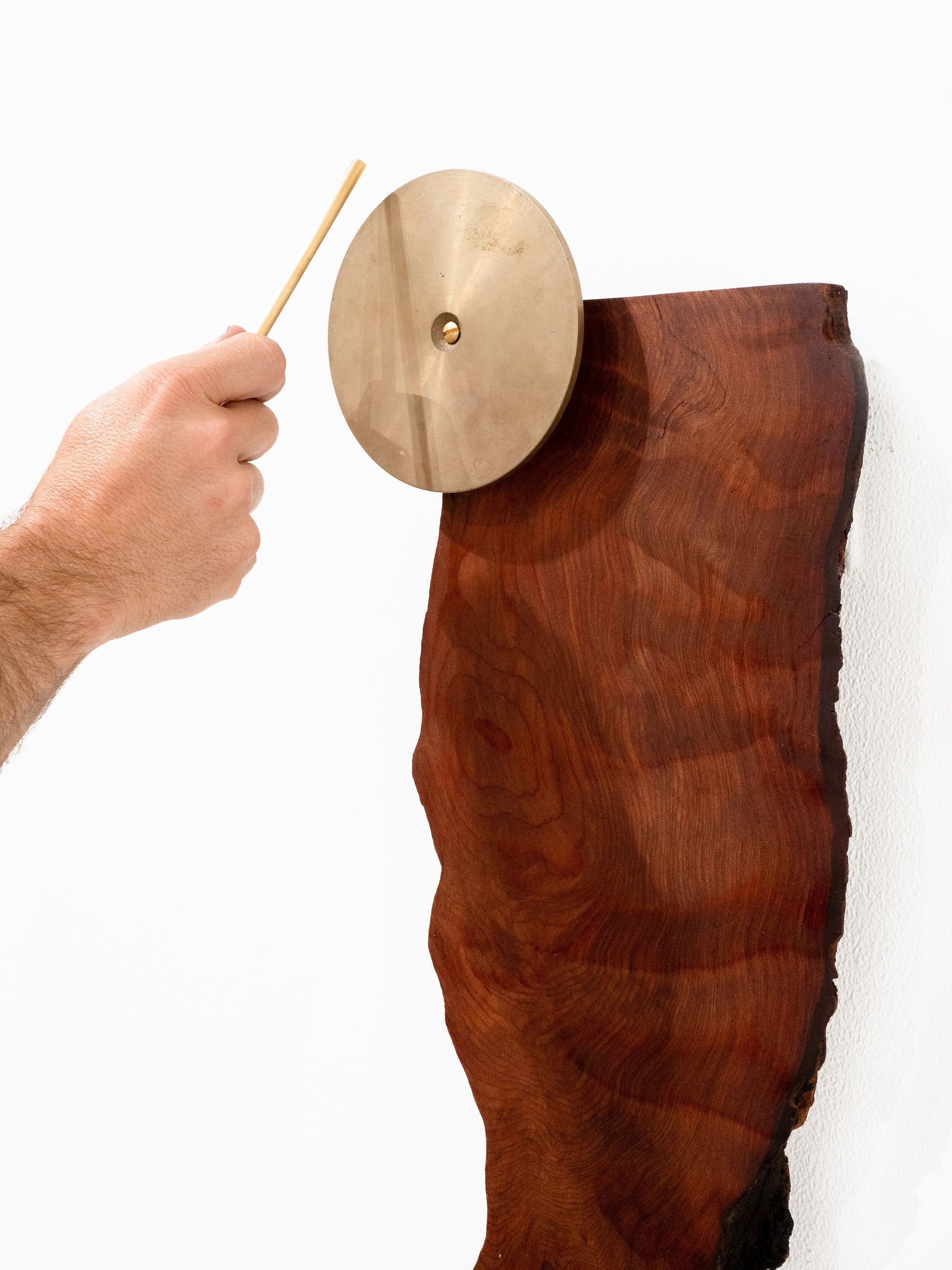 Musician and artist Chris Kallmyer has embarked on a project to redesign the sounds of the home. This piece is a wall-mounted bell made from first growth redwood and a bronze crotale. Rung with a bronze bar, a Hiroshi Bell has a bright and clear sound that is fresh and welcoming on the ear. It's a door bell, a dinner bell, a meditation bell, a garden piece, something to hang on your surf shack, or a sound to remind you that you’re home.
