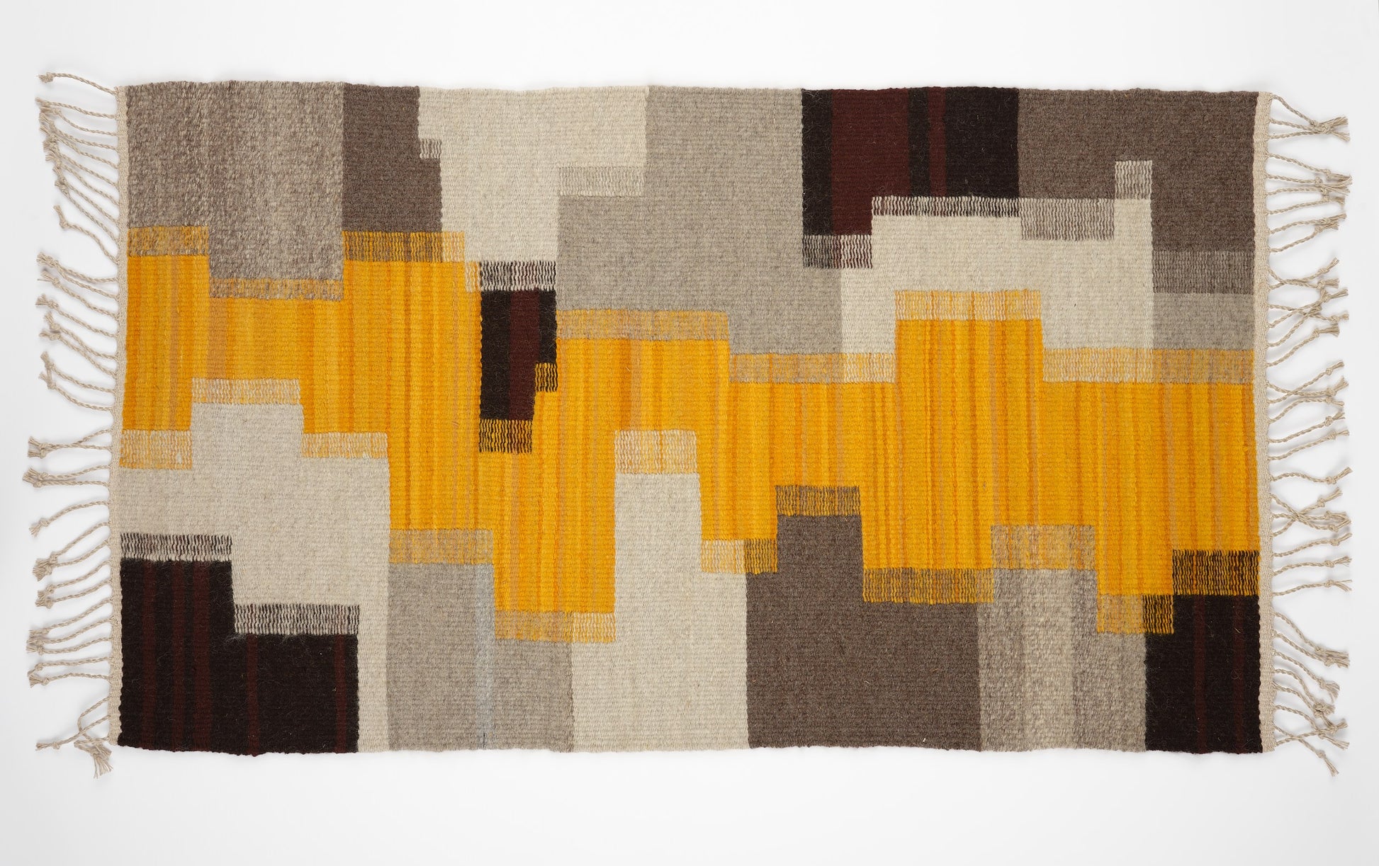 Inspired by JB Blunk, pre-Columbian weaving techniques, and the geometric compositions of Steven Johanknecht's paintings, Christine Nielson hand-weaves these exquisite rugs from wool sourced from a sheep farm in Marshall, CA. Nielson's vivid colors are all hand-dyed using natural plant-based dyes.