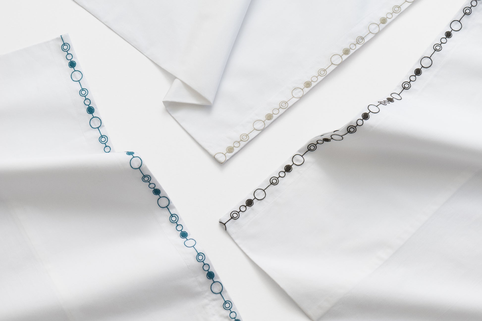The Commune for Hamburg House bedding collection is made of 100% Egyptian cottons and Italian linen, intricately embroidered in our signature patterns. The collection celebrates the California lifestyle, with a mix of Native American aesthetics and a nod to the Bauhaus design movement. Hamburg House is a family owned, high-quality bedding company based in Florida.