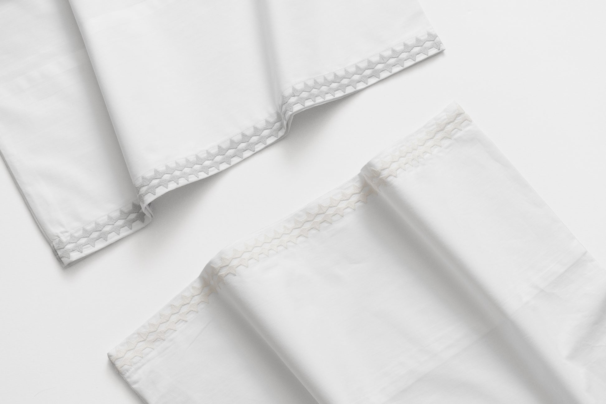 The Commune for Hamburg House bedding collection is made of 100% Egyptian cottons and Italian linen, intricately embroidered in our signature patterns. The collection celebrates the California lifestyle, with a mix of Native American aesthetics and a nod to the Bauhaus design movement. Hamburg House is a family owned, high-quality bedding company based in Florida.