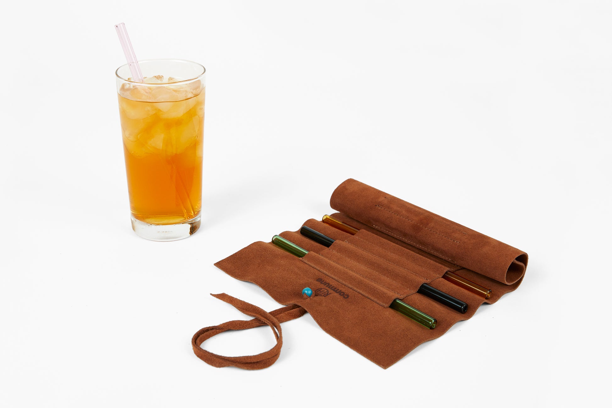 Have you ever sipped a really cold iced tea through a glass straw? Trust us… there is no better iced anything. Ours are handcrafted in New Jersey in a fantastic array of colors with a suede carrier made by our good friends at RTH.