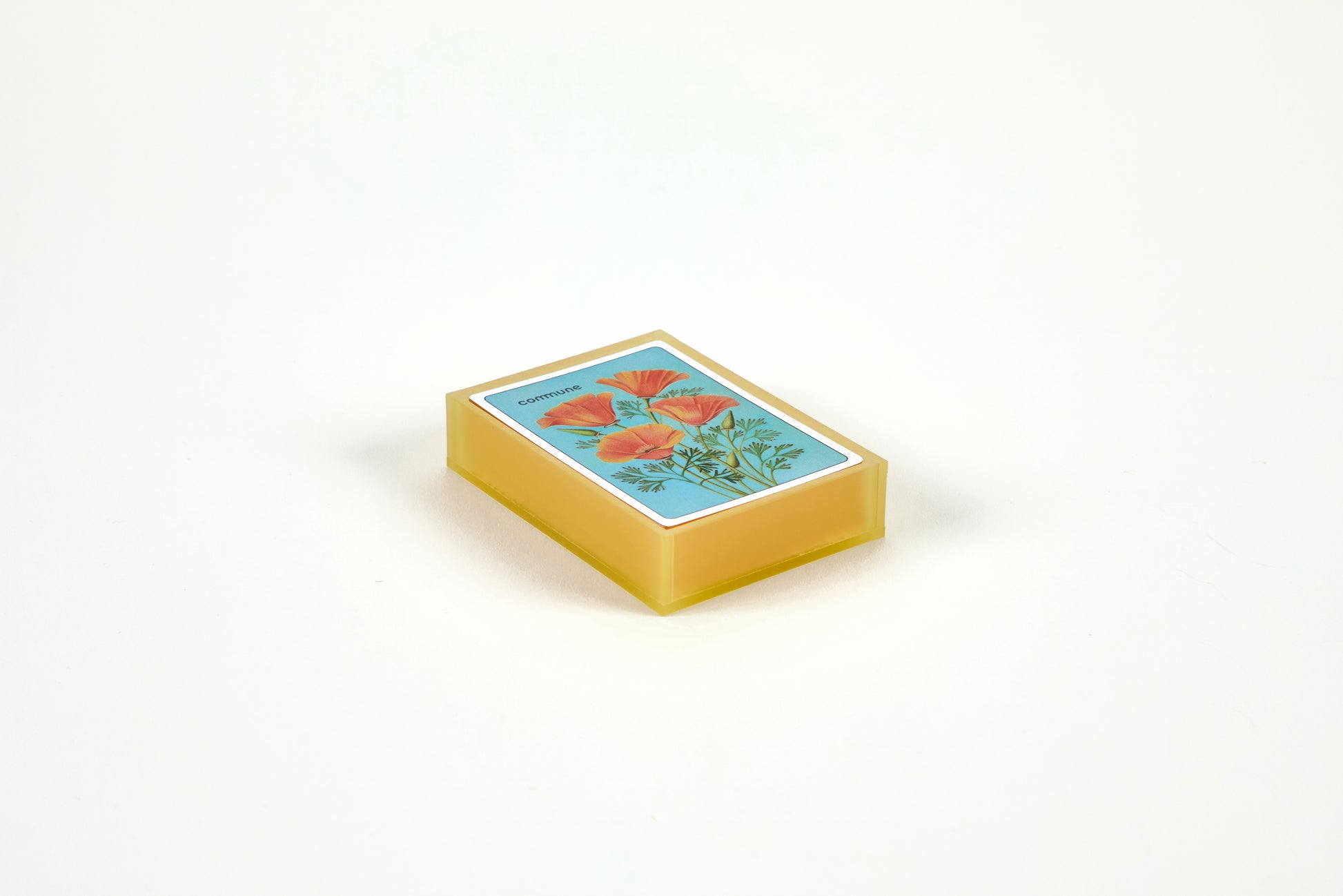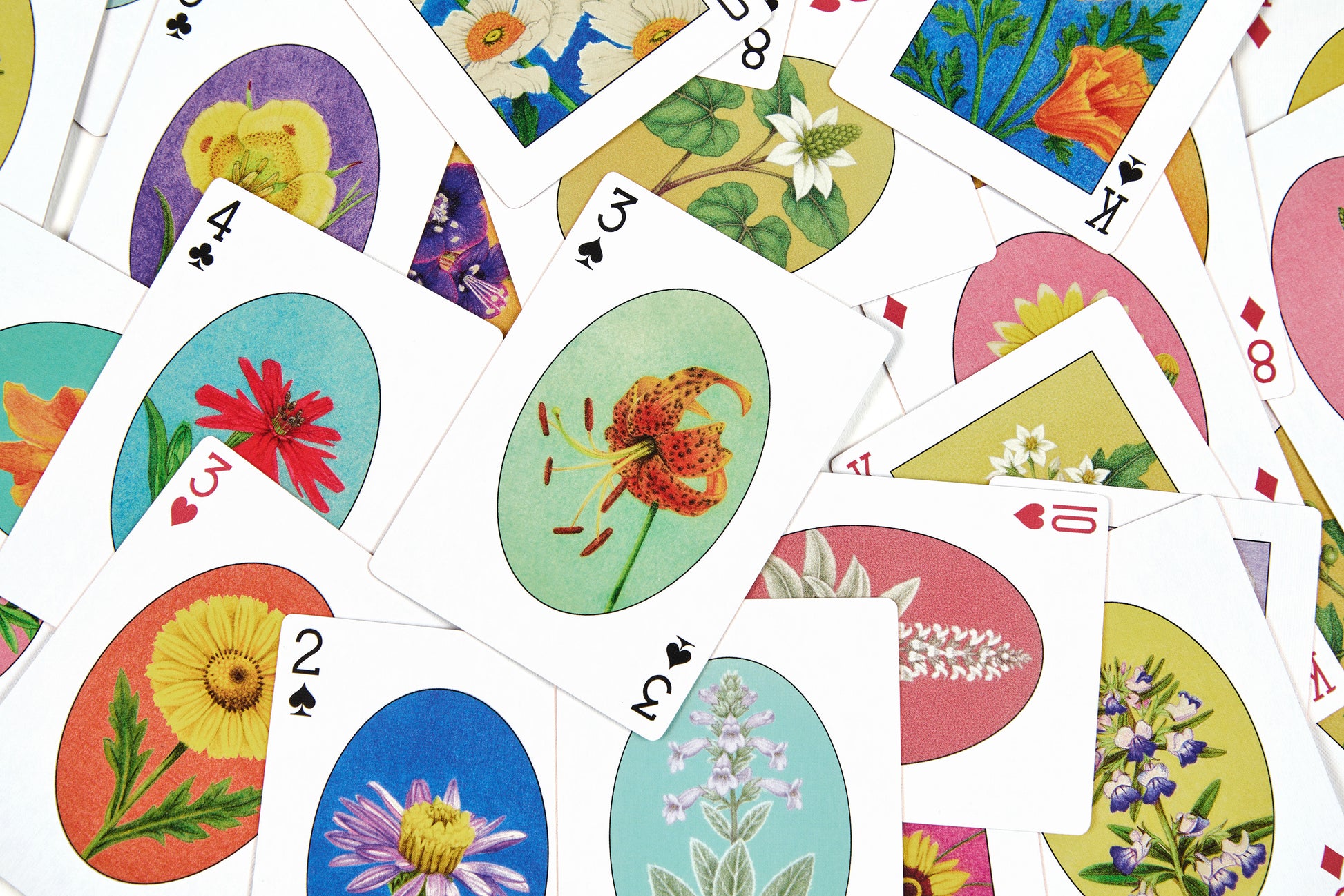 A deck of standard poker-sized playing cards featuring illustrations of Los Angeles native wildflowers hand-drawn by Commune’s David Kasprzak. The deck is printed on high quality black core linen with copper guilded edges.