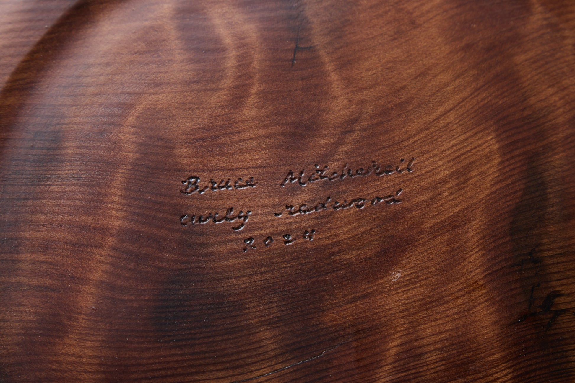 Bruce's work is greatly influenced by the carving techniques absorbed from JB Blunk during his early years as an apprentice. The abstract forms he creates range in size from the tabletop to the monumental and we were fortunate enough to acquire the platters offered here. Made from Curly Redwood.