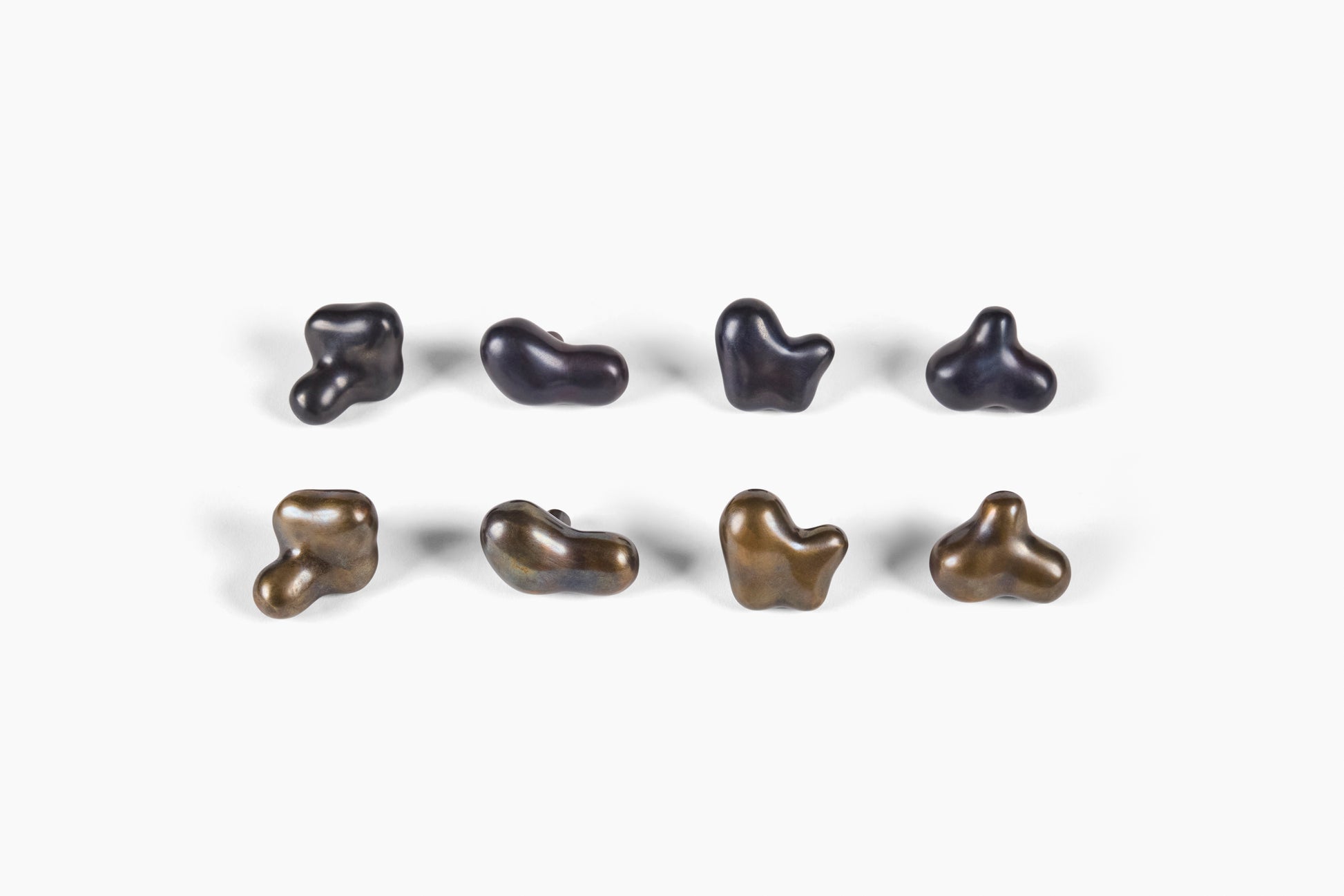 Organic forms that want to be handled. Inspired by the unique shapes of natural opaline concretions called Menilite which form within shale and gypsum deposits. Sculpted by hand in porcelain and cast in bronze.