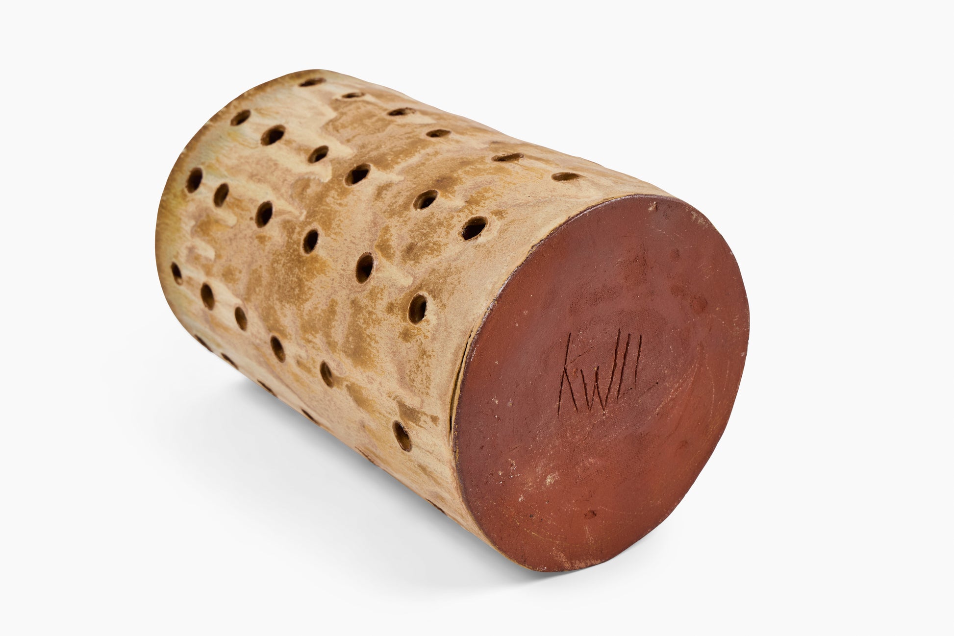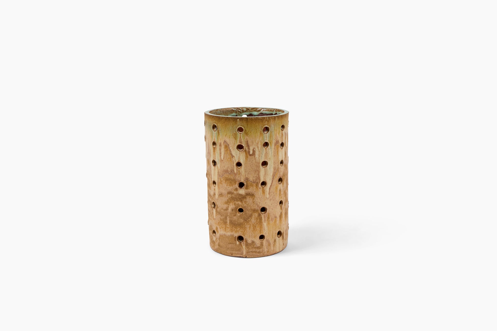 One of a kind lanterns, made in collaboration with Southern California based ceramicist Kevin Willis. Each lantern is hand-built with slabs of clay and then punched with various sized holes for a dappled light when candlelit. These lanterns look great with our smaller Kevin Willis Votives.