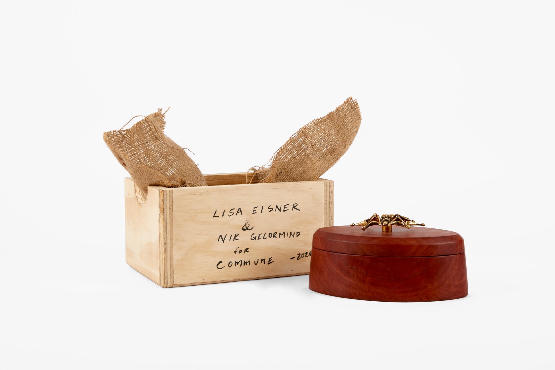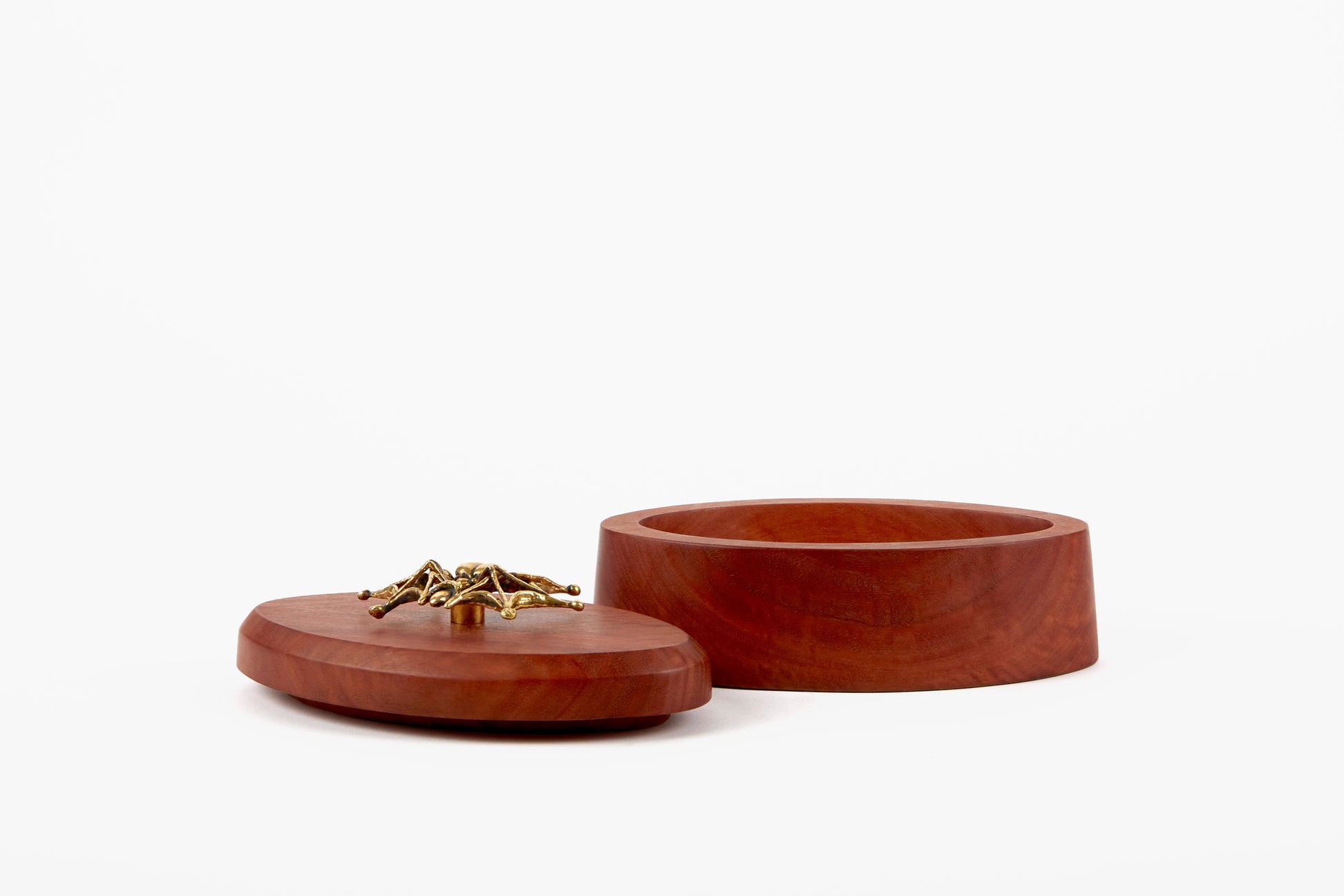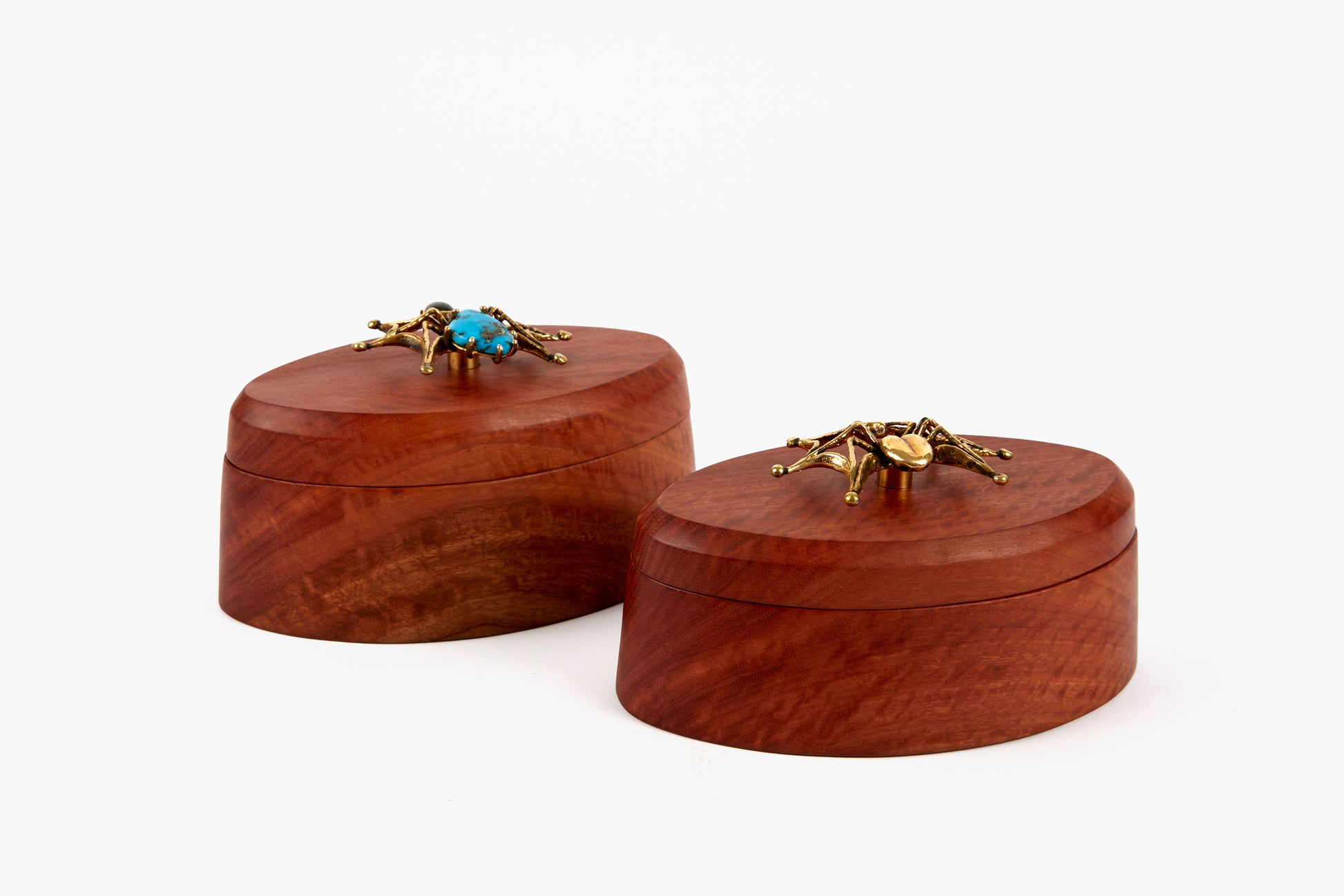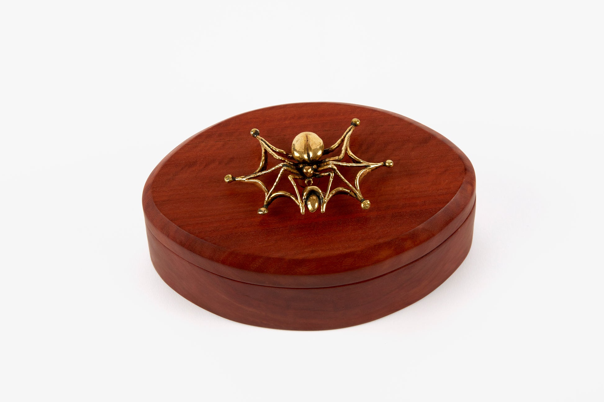 What do you get when two of our favorite artisans work together? These incredible hand carved stash boxes with one of a kind sculptural handles. Nik Gelormino carves each box from a single piece of red gum eucalyptus, shaped to play off the forms of Lisa Eisner's hand cast bronze spiders. An incredibly limited release to end the year with, each box comes signed and numbered.