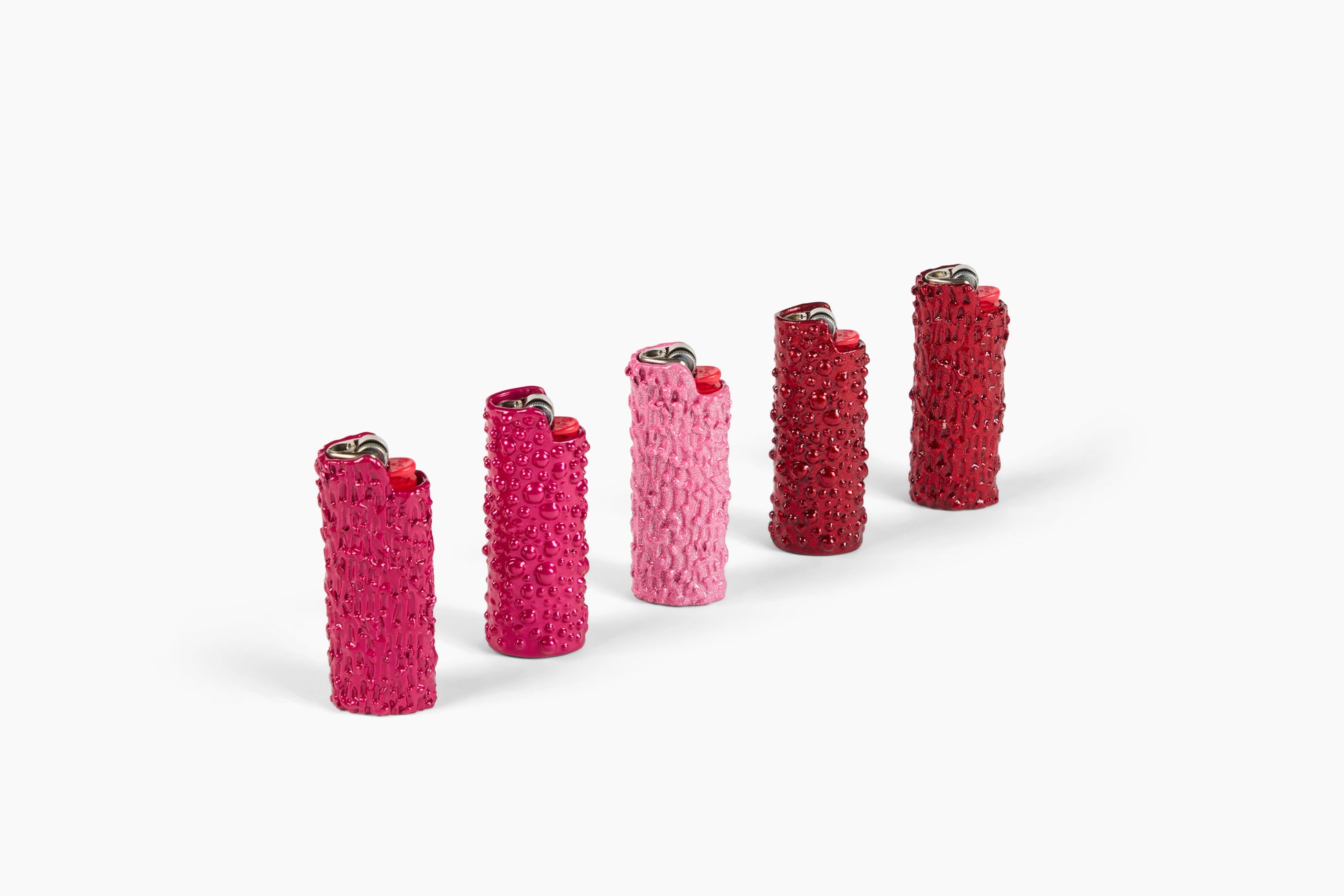 Individually carved, cast and enameled lighter cozies from Lisa Eisner. These sculptural lighters are cast in bronze and are made to work with a standard Bic brand lighter. Stiriking and vibrant, these special edition pieces are available in both of Lisa's iconic Horny Toad and Tree Skin textures.