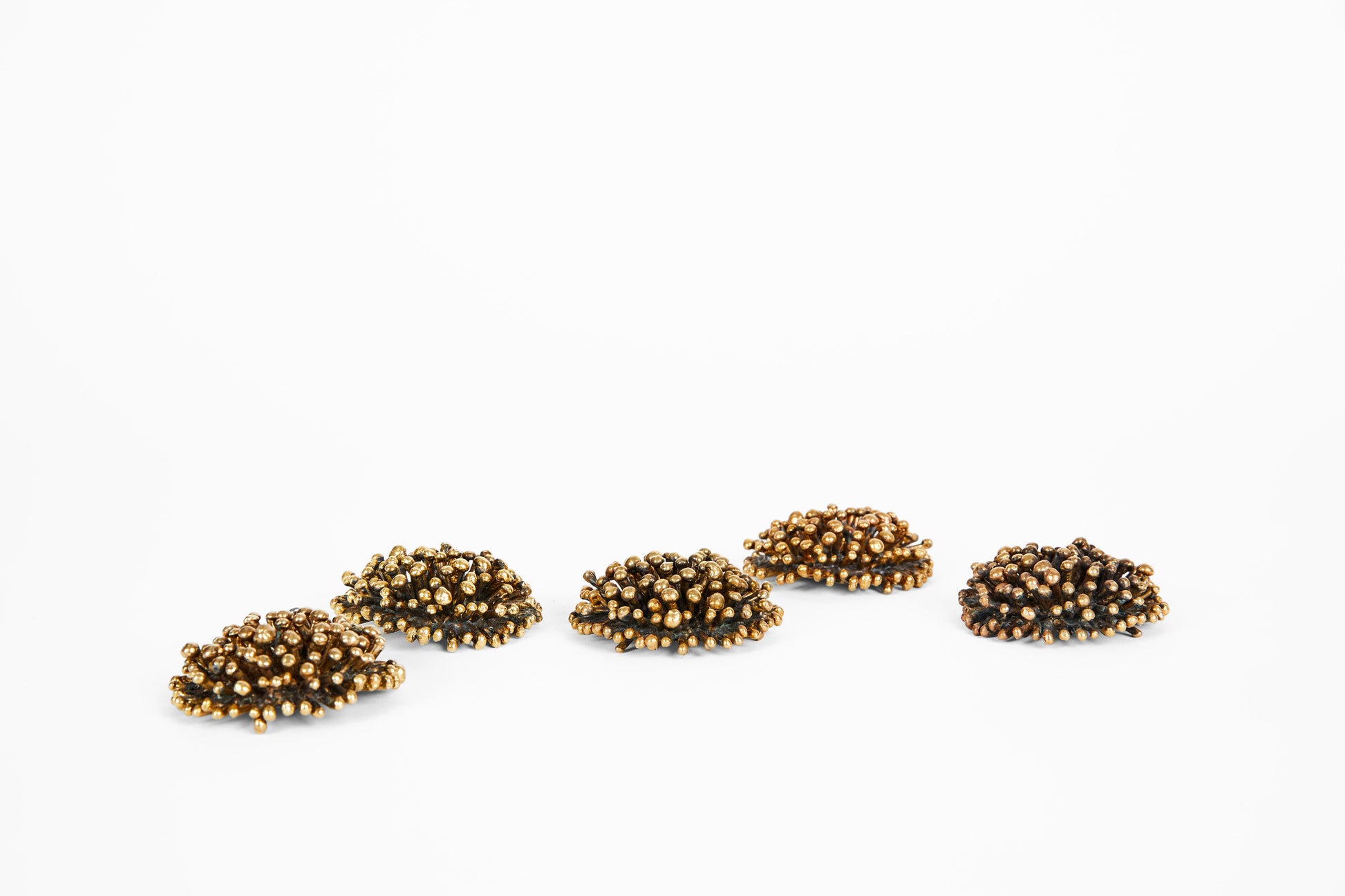 Lisa Eisner has always been inspired by 1970's artist studio pieces, "often these artists worked in bronze and made unique one-of-a-kind jewelry pieces that were almost like little sculptures", and has created her own collection of little sculptures exclusively for Commune. Lisa's signature spore design, reminiscent of a sea urchin. This urchin is part sculpture, part incense holder; and can hold a variety of different incense stick sizes. Made in blackened bronze using a lost wax casting technique.