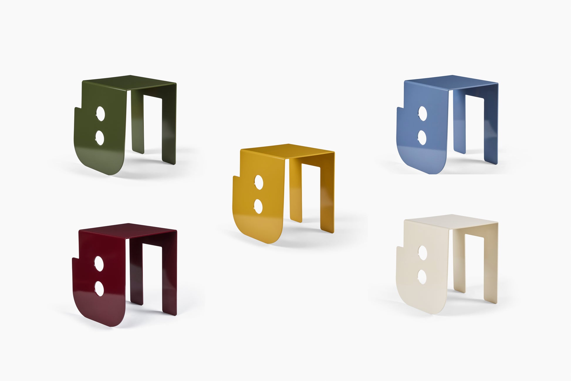 Our long time Commune Shop collaborator, Lisa Viscardi, has moved into a new medium of metal with these forms. An instant classic, Persona Tables are powder coated aluminum making them versatile and ideal for indoor or outdoor use. Inspired by ancient masks, Picasso, and the iconic PBS logo.