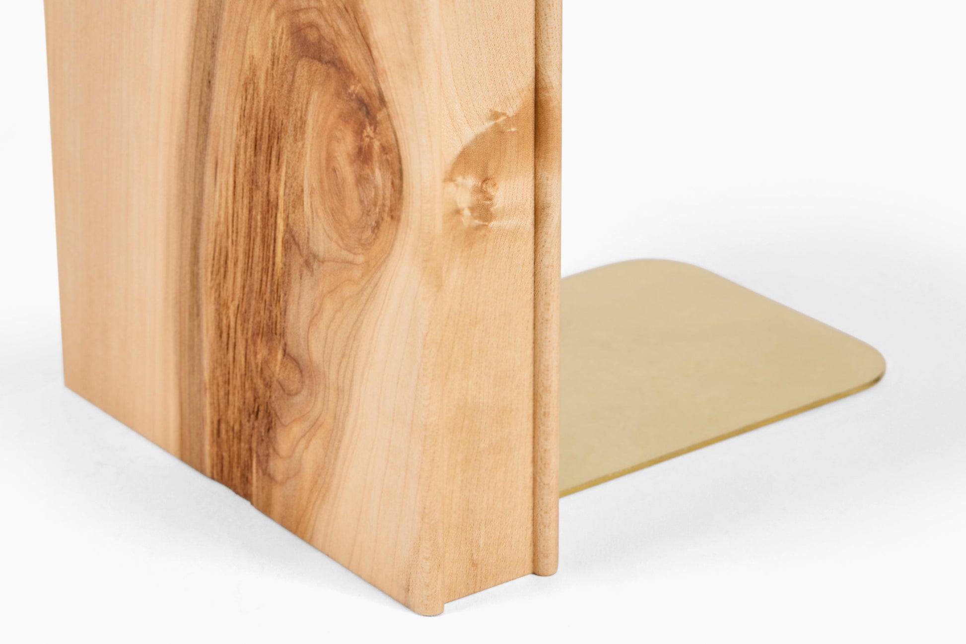 Inspired by the simple and recognizable form of a book, these 'book' ends are handcrafted in Los Angeles created using up-cycled remnants from Luck Carpentry projects past. Each piece has a brass base firmly wedged into the bottom to ensure the successful propping of your heaviest tomes.