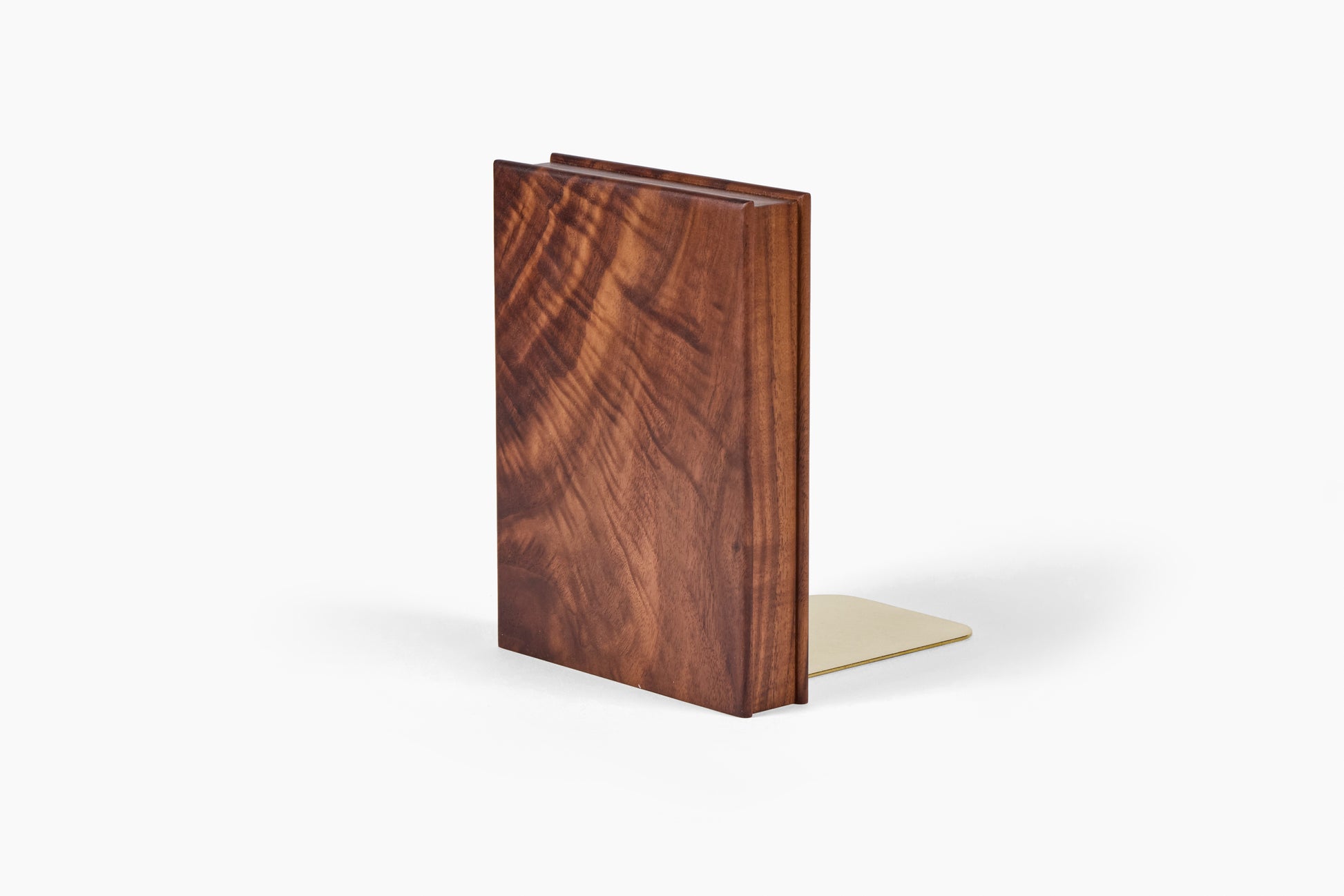 Inspired by the simple and recognizable form of a book, these 'book' ends are handcrafted in Los Angeles created using up-cycled remnants from Luck Carpentry projects past. Each piece has a brass base firmly wedged into the bottom to ensure the successful propping of your heaviest tomes.