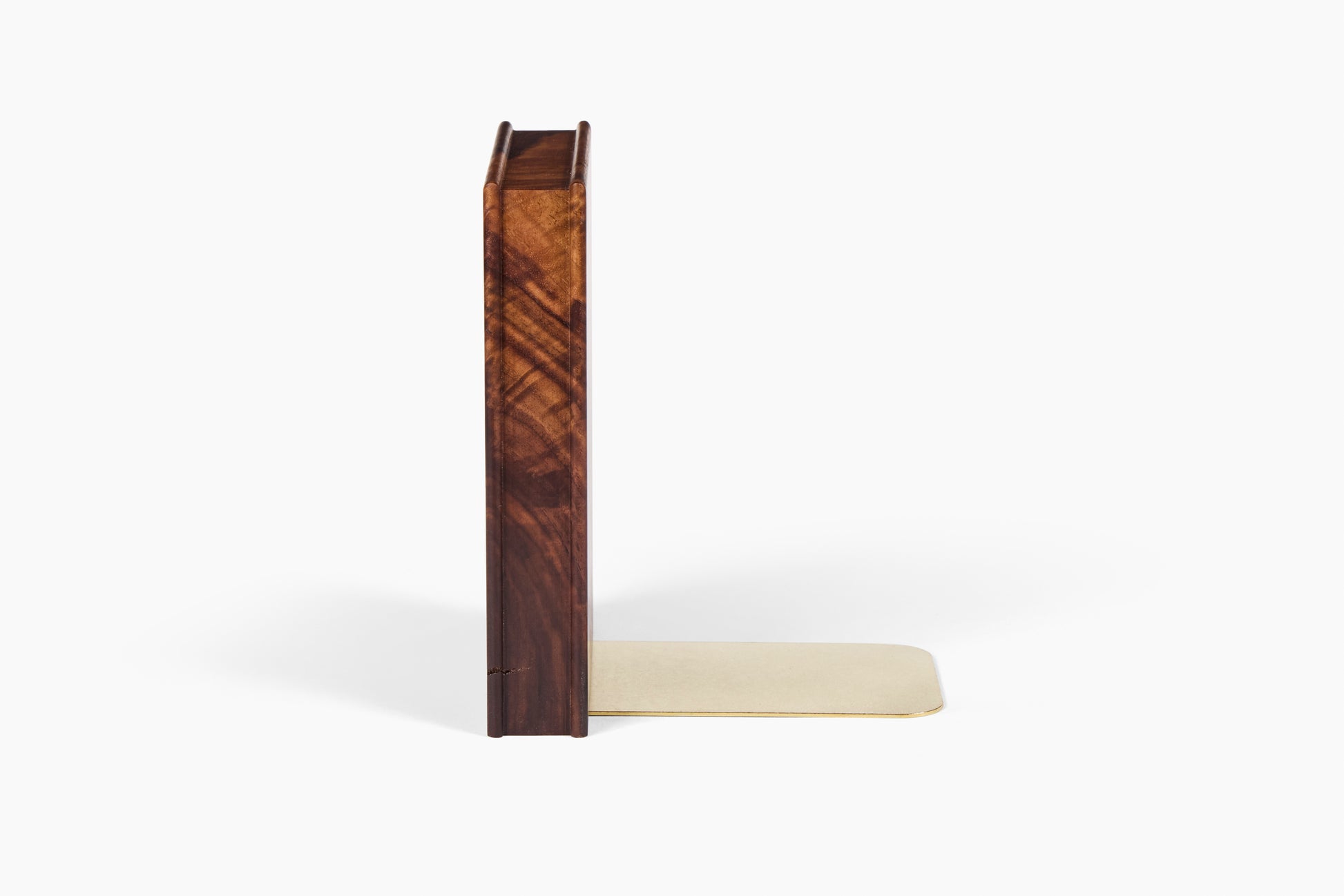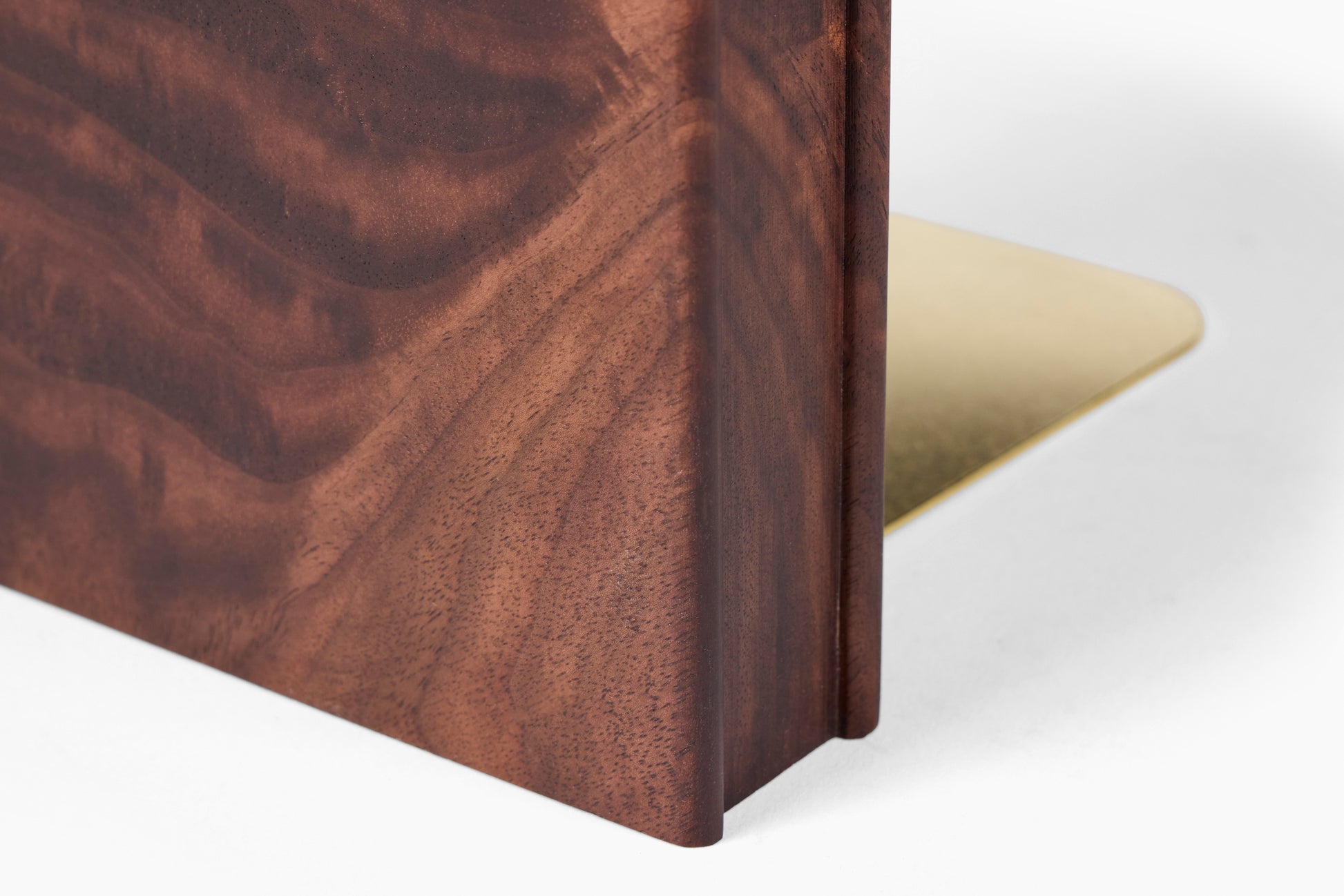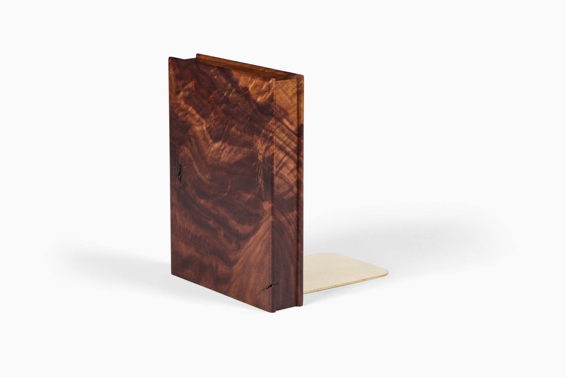 Inspired by the simple and recognizable form of a book, these 'book' ends are handcrafted in Los Angeles created using up-cycled remnants from Luck Carpentry projects past. Each piece has a brass base firmly wedged into the bottom to ensure the successful propping of your heaviest tomes.