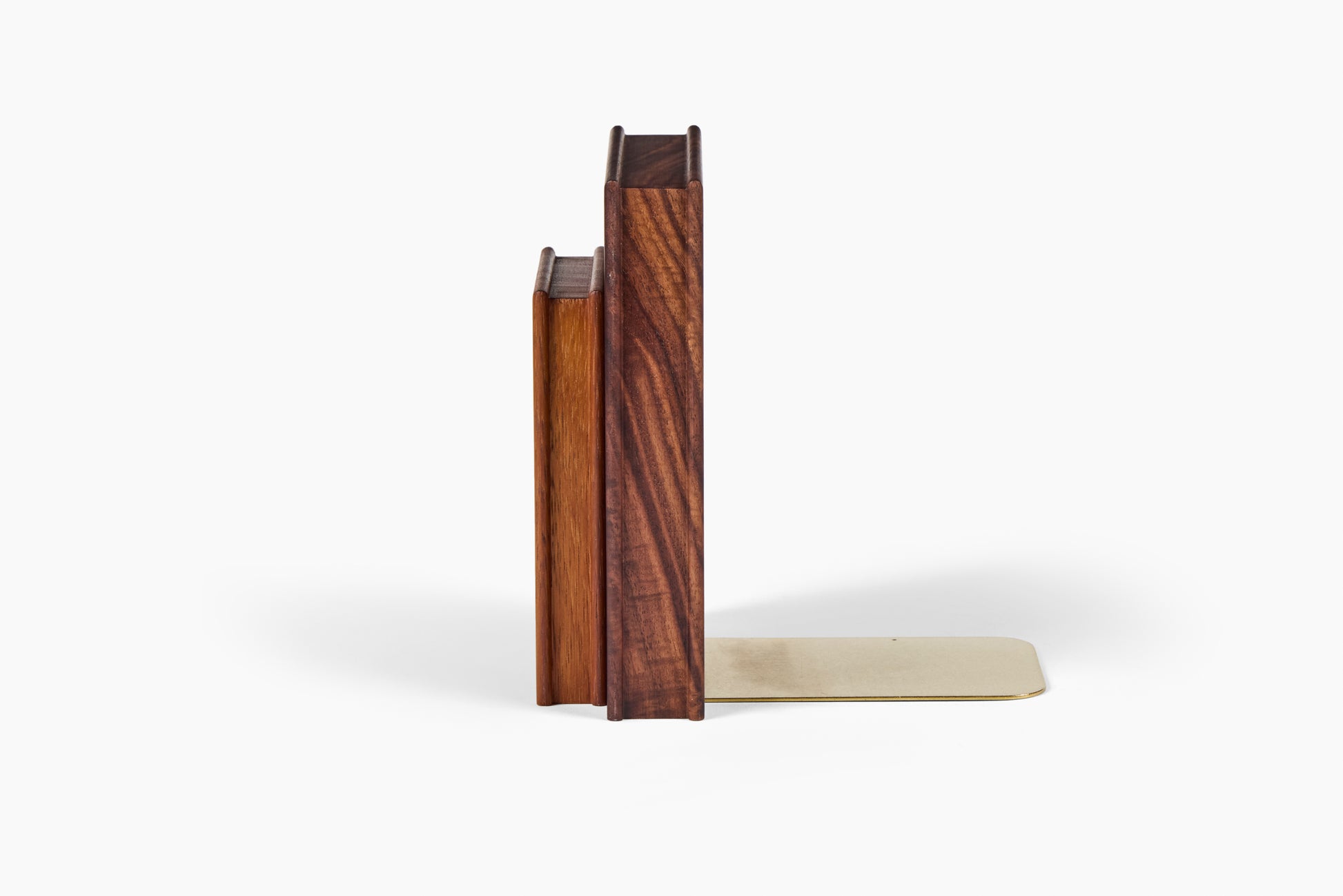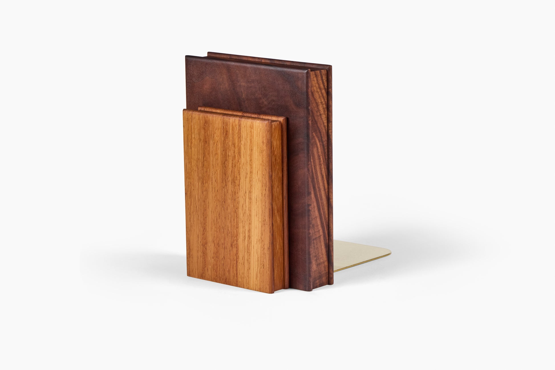 Inspired by the simple and recognizable form of a book, these 'book' ends are handcrafted in Los Angeles created using up-cycled remnants from Luck Carpentry projects past. Each piece has a brass base firmly wedged into the bottom to ensure the successful propping of your heaviest tomes.