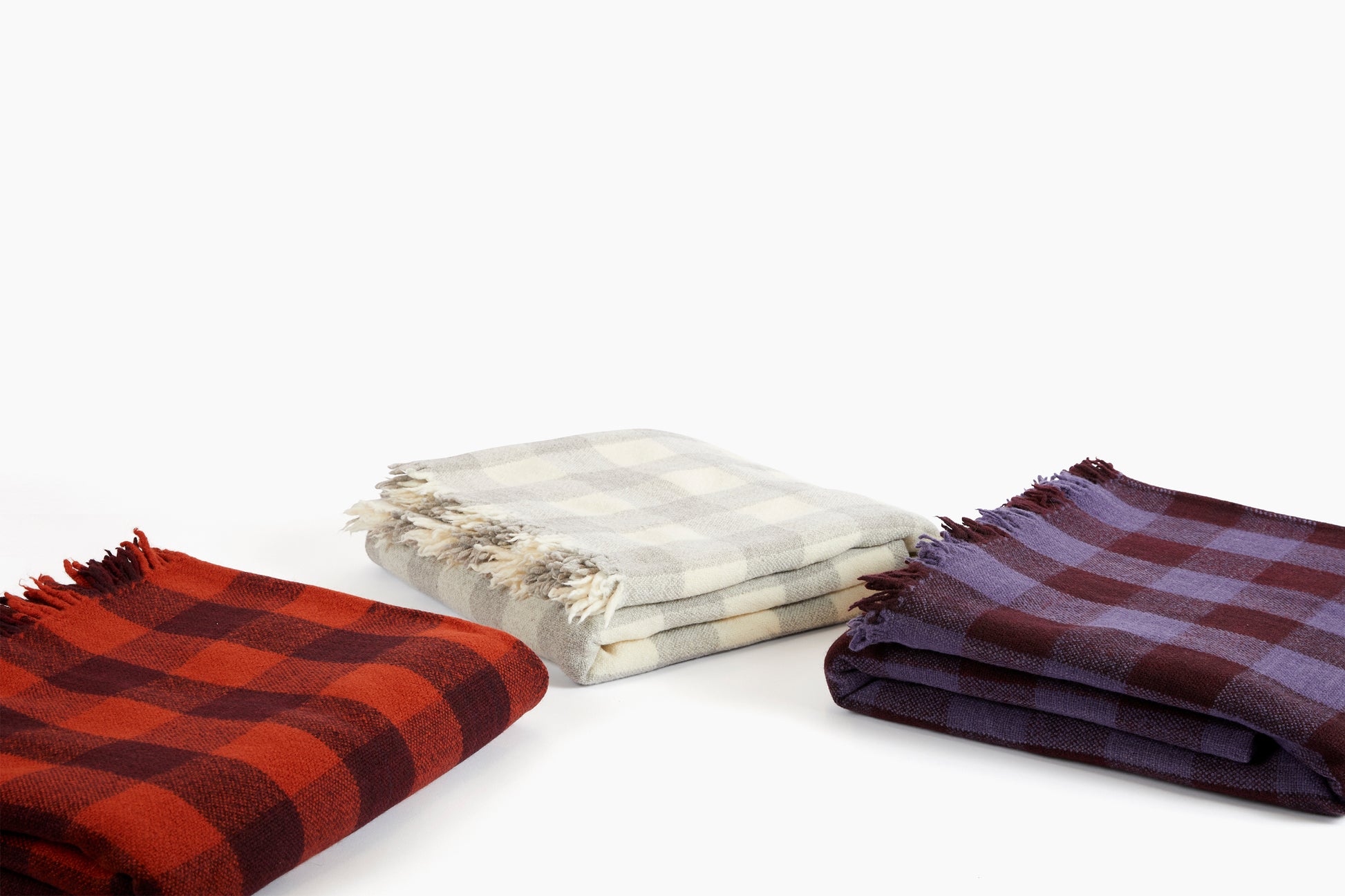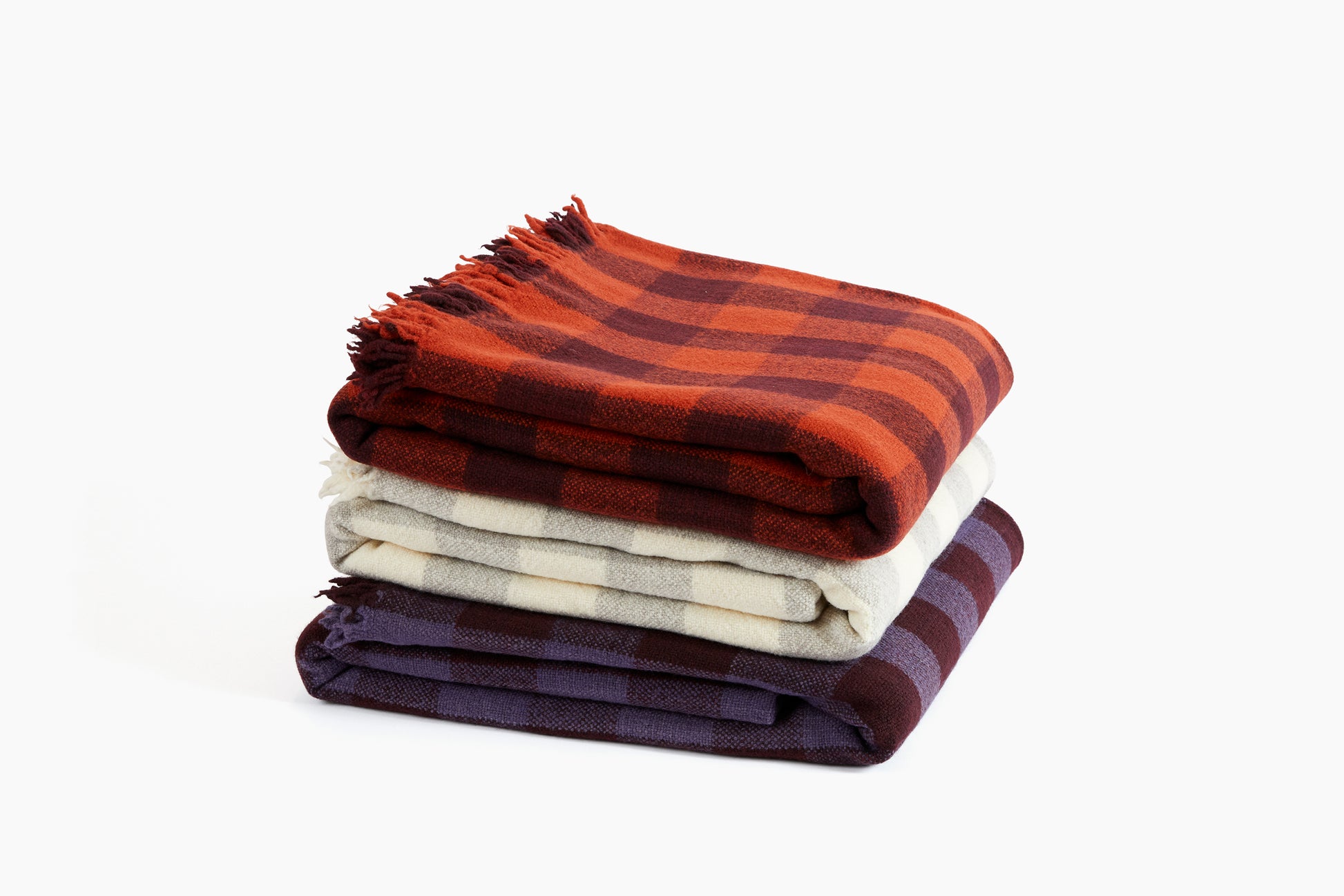 We collaborated with San Francisco-based textile artist and designer Marina Contro to bring these blankets to life. Each blanket is woven entirely by hand in her studio in San Francisco. Marina received her MFA in Fiber from Cranbrook Academy of Art and has held residencies at Castello di Potentino, Andrea Zittel's A-Z West, Fondazione Arte della Seta Lisio, and Marshfield School of Weaving.