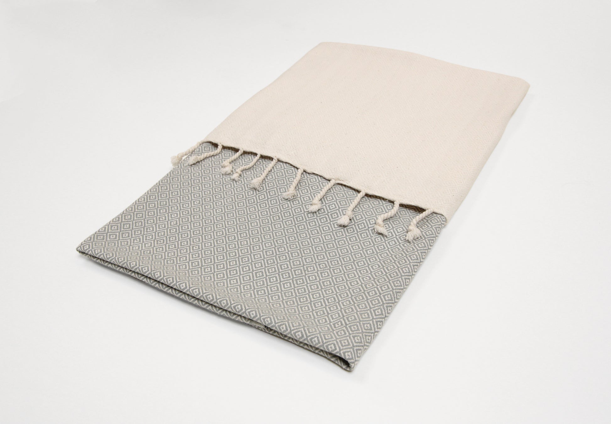 Soft and lightweight, this organic cotton towel has a simple color block look in sage and natural. Handwoven with a subtle diamond pattern by native artisans in Turkey, this towel will continue to get better and better with use over time.
