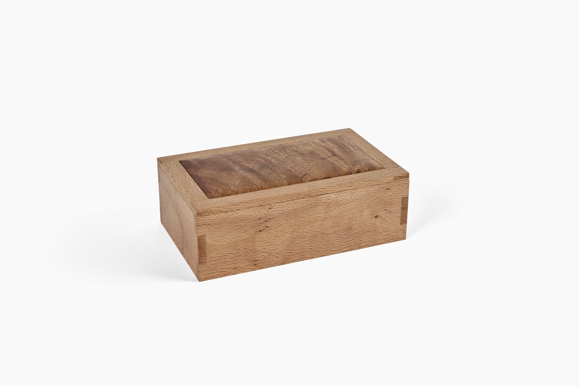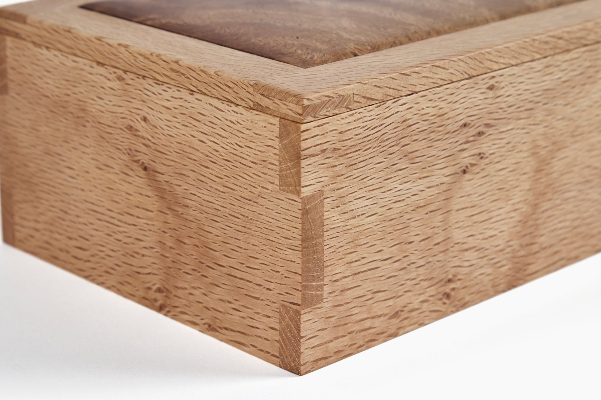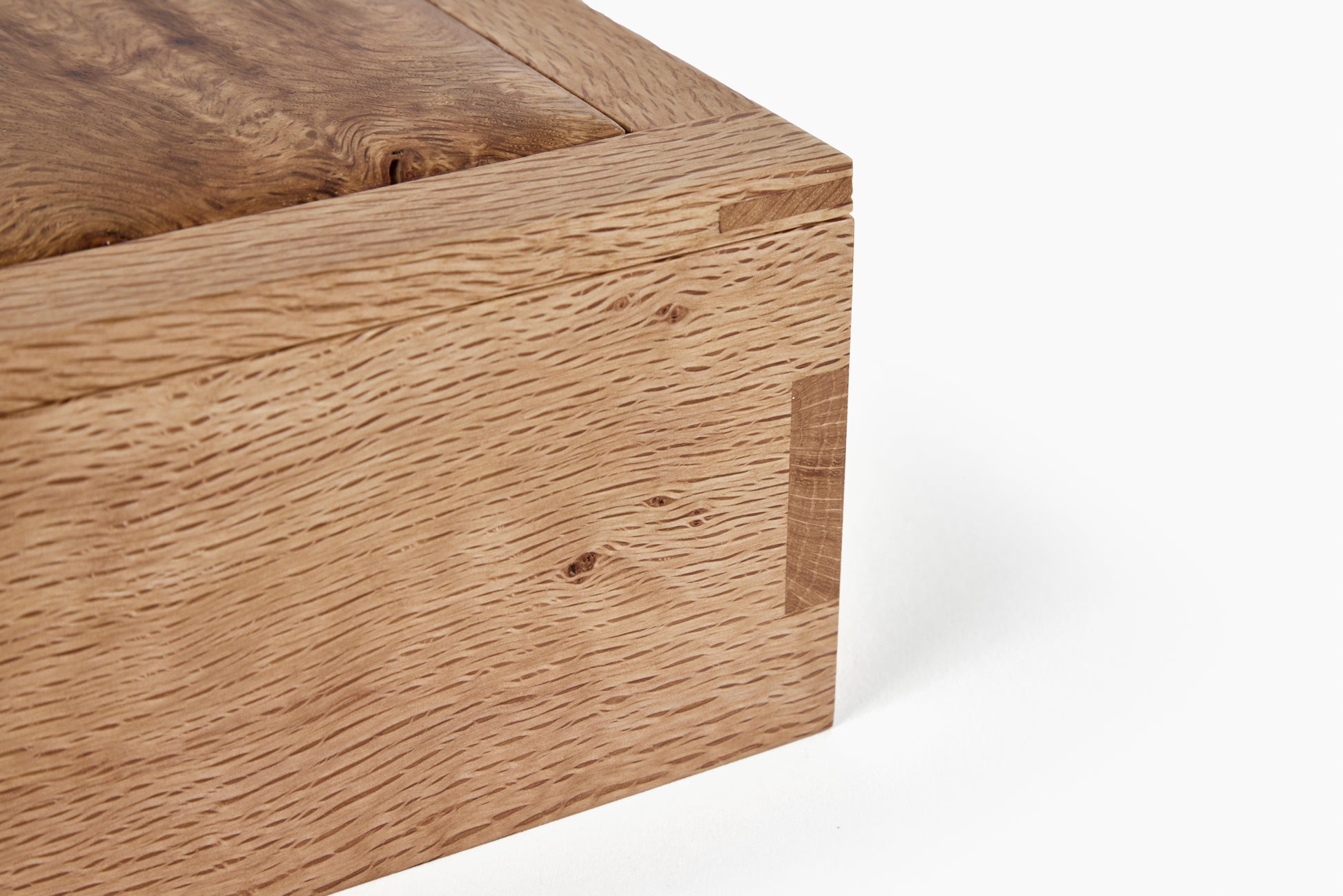 This particular box is made of coast live oak. The lumbar is from a branch of a tree from Noah's family home. Coast live oak is the iconic low sprawling oaks seen on the rolling hills of California.