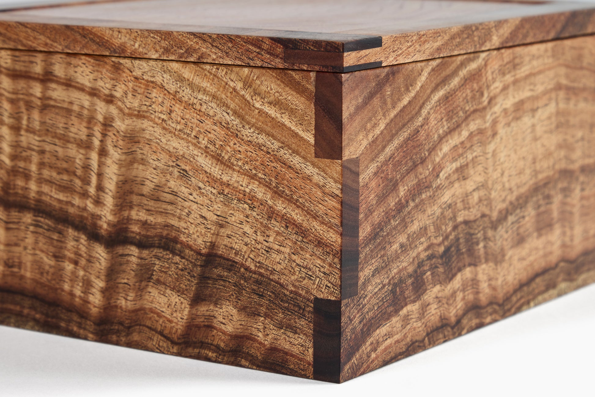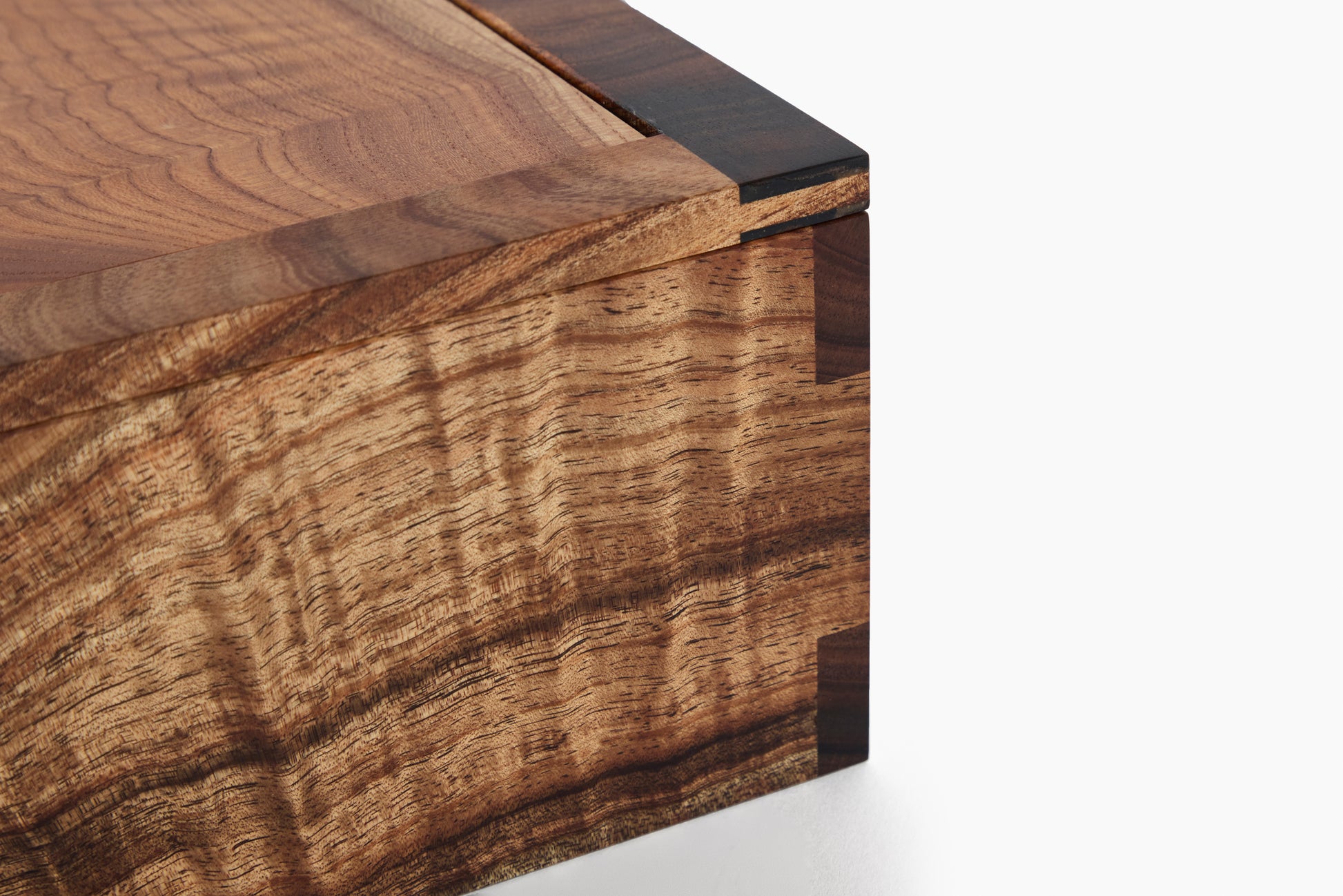 Designed by local woodworker Noah Cohen, this piece is a testament to his Santa Cruz roots and education at The Krenov School. Each box is a unique work of art, perfect for storing and showcasing your most cherished items.
