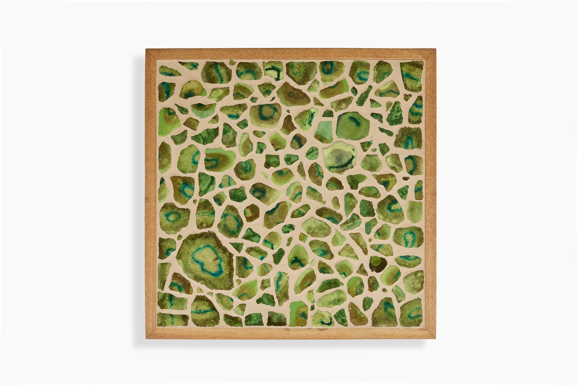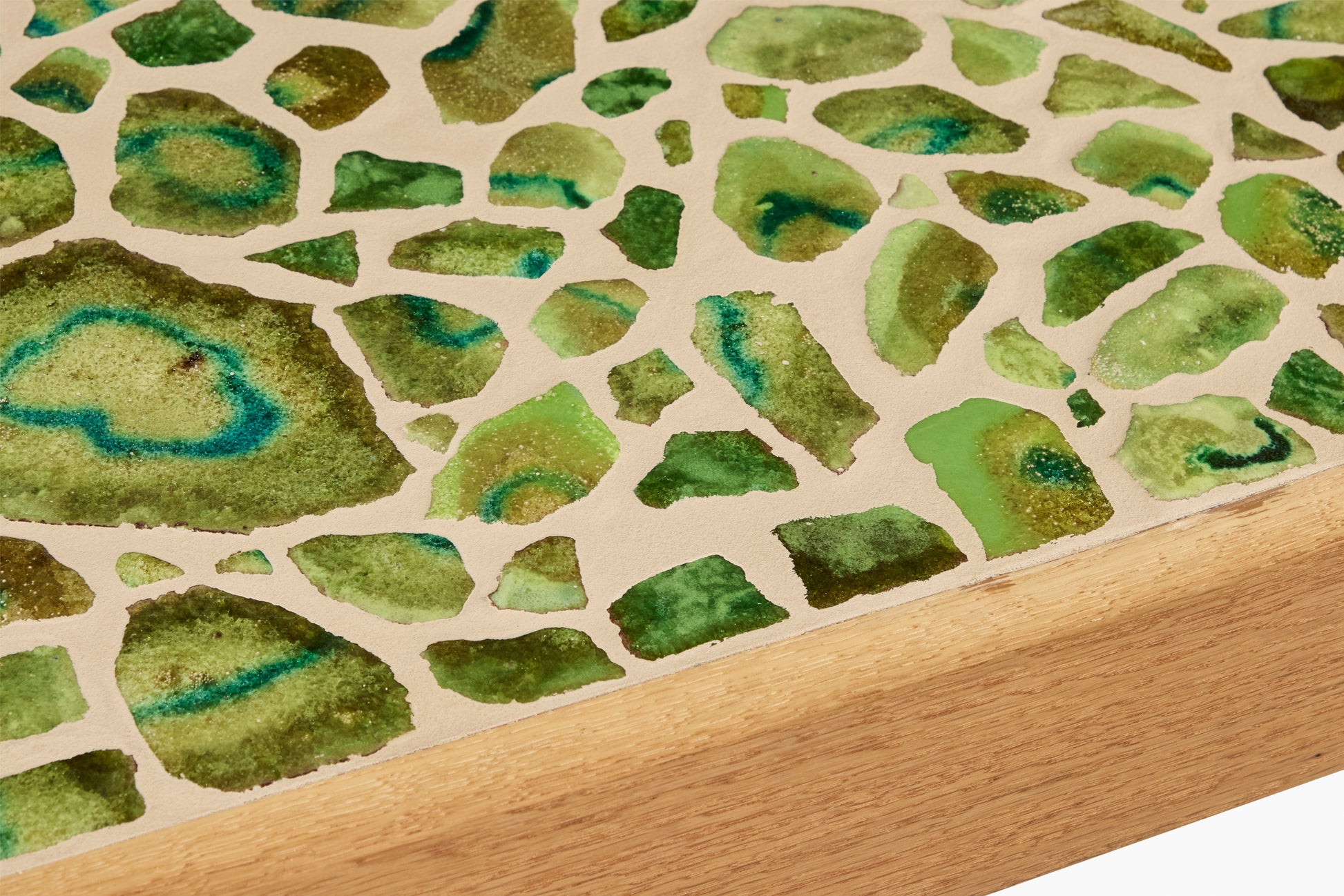Sofia Londoño is a Colombian-American artist, living and working in Los Angeles, known for her distinctive approach to ceramic murals. Her labor-intensive process involves meticulously sculpting individual tiles, layering glazes rigorously formulated in the studio, and assembling them into atmospheric landscapes; blurring the boundaries between painting and sculpture. Drawing inspiration from a rich and long lineage of mosaic makers, and the natural world, her art explores the mesmerizing interplay between the vast and the minuscule, the macro and micro scales found in nature. She closely studies organic material through a microscope to capture intricate patterns, delving into the delicate beauty of cellular biology and organic structures.