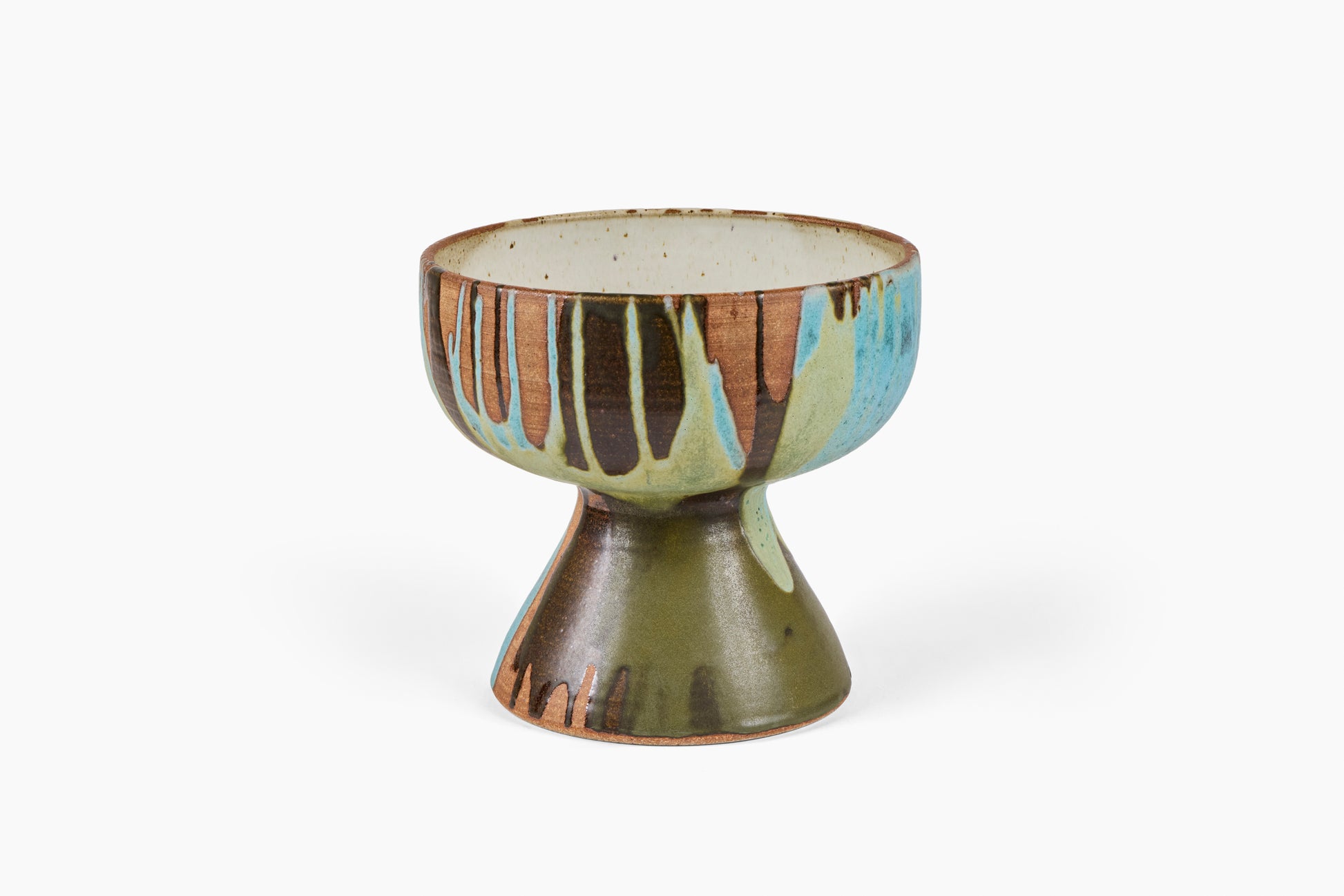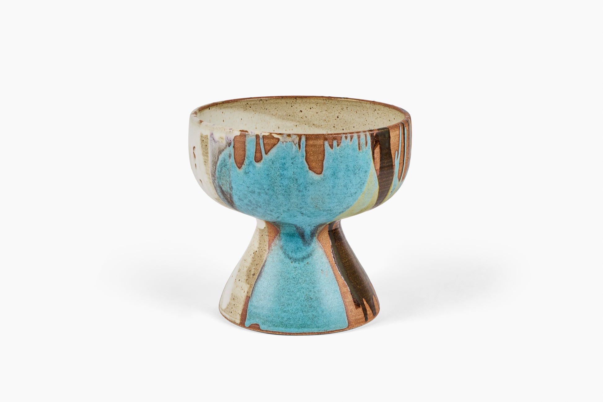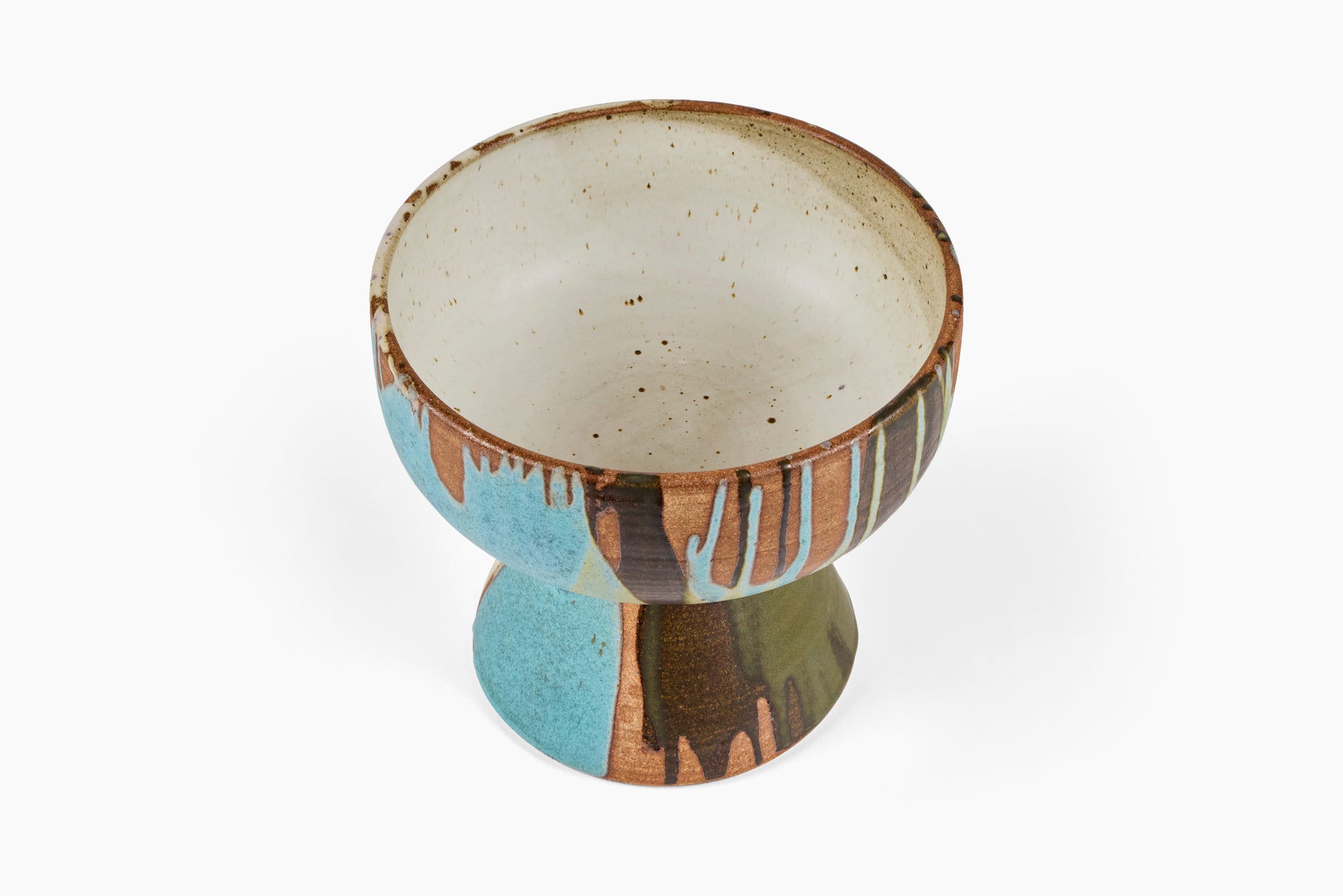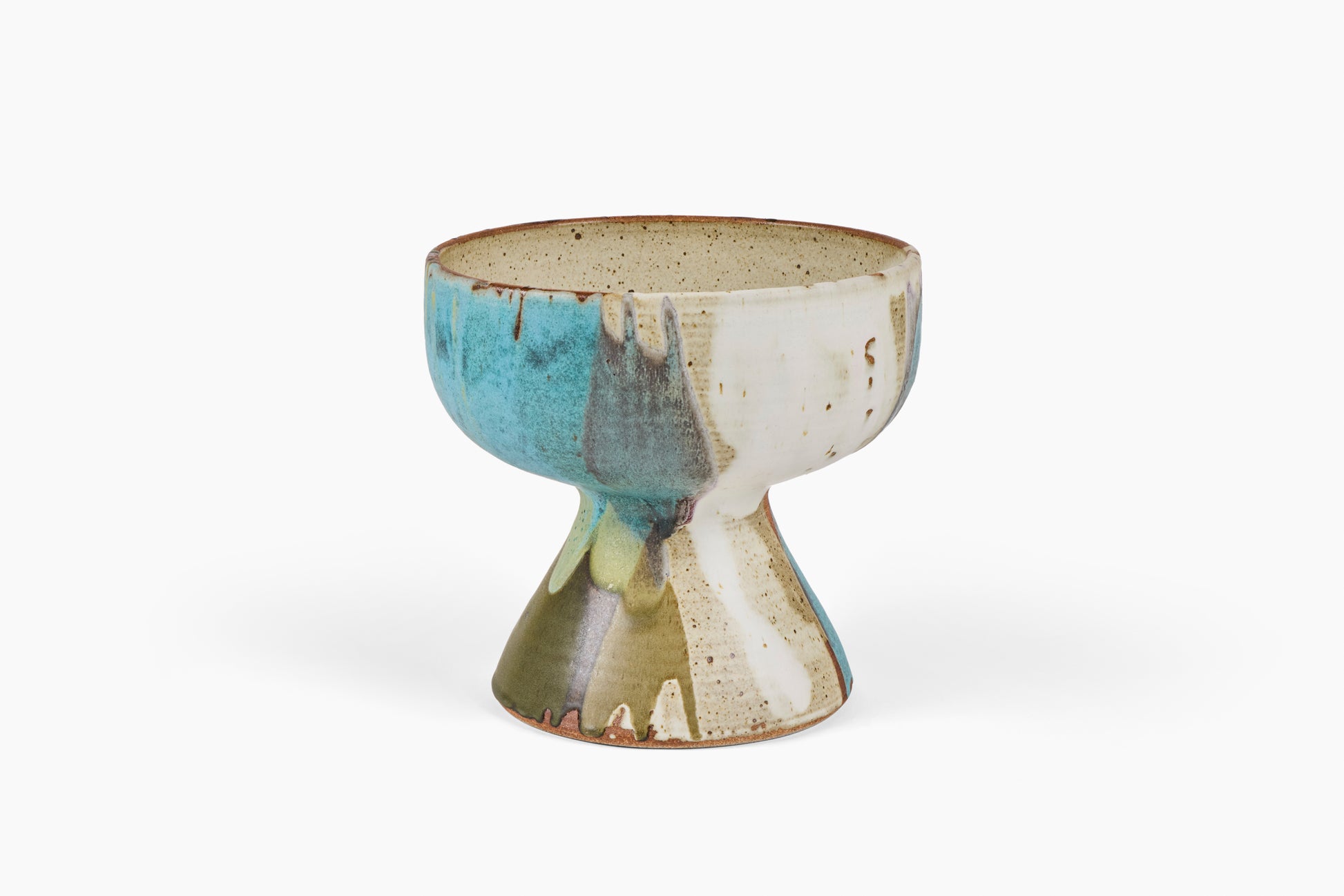 Sunja Park references the organic shapes and palette common in late 60's and early 70's ceramics. Her freehand forms, unique palette and drippy glaze textures make each of these bowls truly one of a kind.