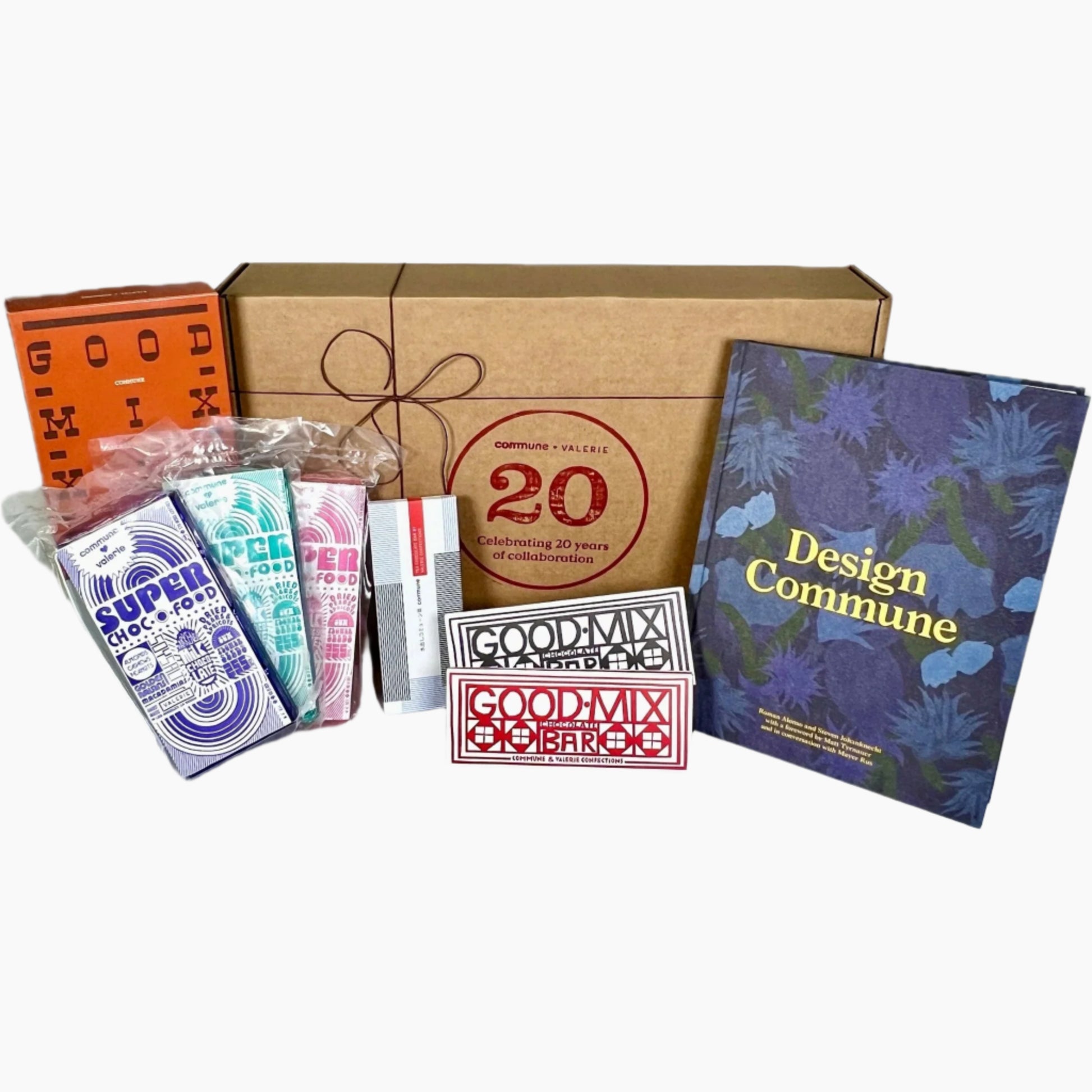 The Commune + Valerie Gift Set is a celebration of design, craftsmanship, and gourmet indulgence. Created in collaboration with Commune Design, this meticulously curated collection brings together artful chocolate creations and the iconic Commune Design Book—a must-have for lovers of culture, aesthetics, and fine confections.
