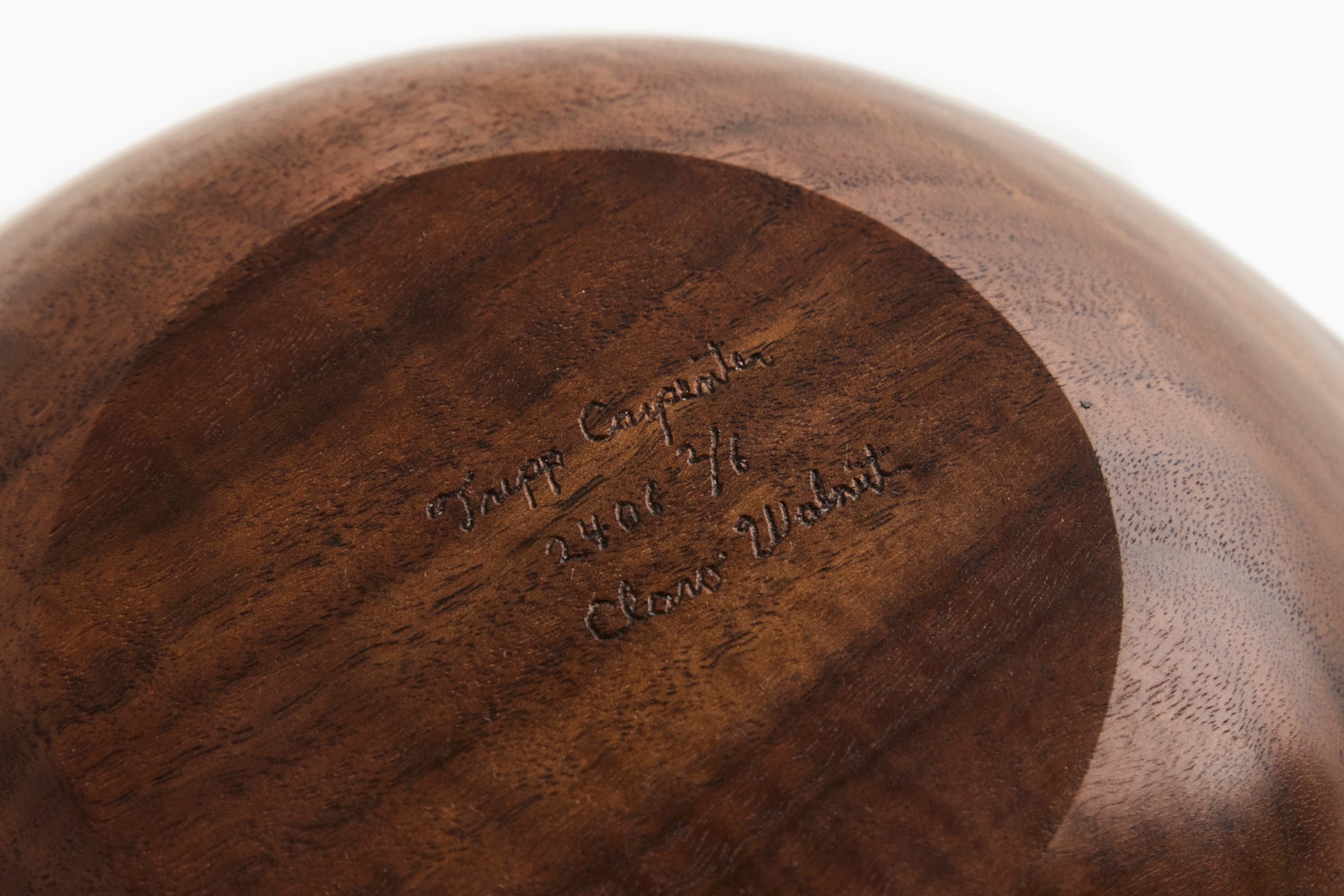 Tripp Carpenter has worked with wood since he was a child in Northern California with his self-taught father, Art Espenet Carpenter, a prolific and iconic furniture designer and woodworker. We've been lucky to acquire a grouping of Tripp's one of a kind bowls. Each work is hand made, signed and numbered. This particular bowl is delicately crafted with walnut.